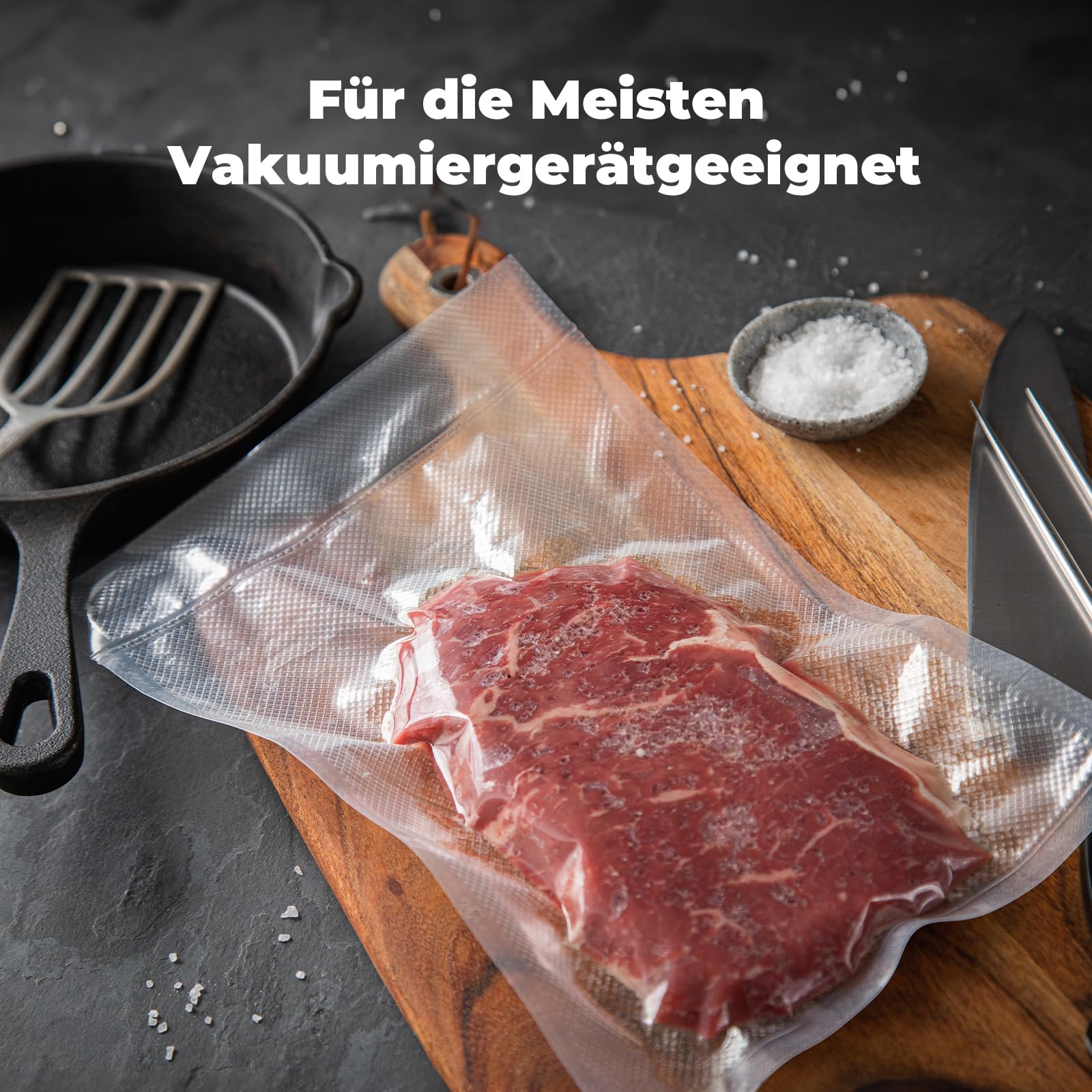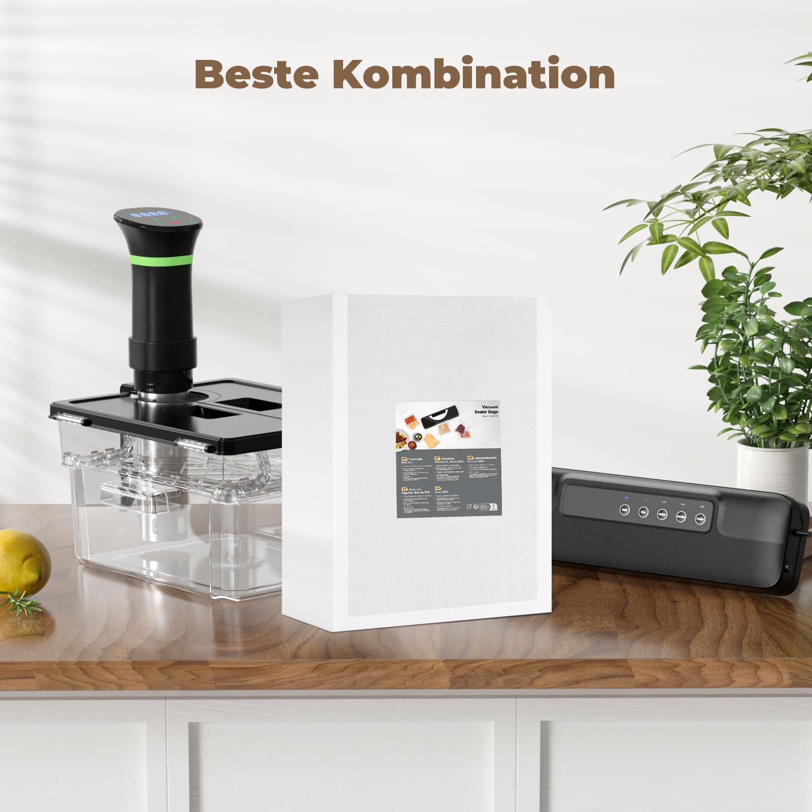 ["【Easy to Use】Vacuum food bags are precut, no need to cut again. At the same time, each piece of the bag has an easy-to-tear opening design, easy and convenient to use","【One-Sided Embossing】The one-sided embossed design of the vacuum sealing film ensures better suction and is less prone to tears and holes, helping to better seal in the moisture of the food and preserve its original nutrients","【BPA Free】Vacuum bags are resistant to high and low temperatures, and can be frozen, steamed, and microwaved. Temperature range -20~110℃","【Universal Vacuum Bags】Suitable for most vacuum sealers, compatible with Sous Vide, it can help you control cooking temperature accurately to achieve perfect results","【Essential Kitchen Utensils】The vacuum bag helps you store leftovers, prepare meals in advance, avoid waste, save time in cooking, and keep your fridge tidy and free from clutter"]