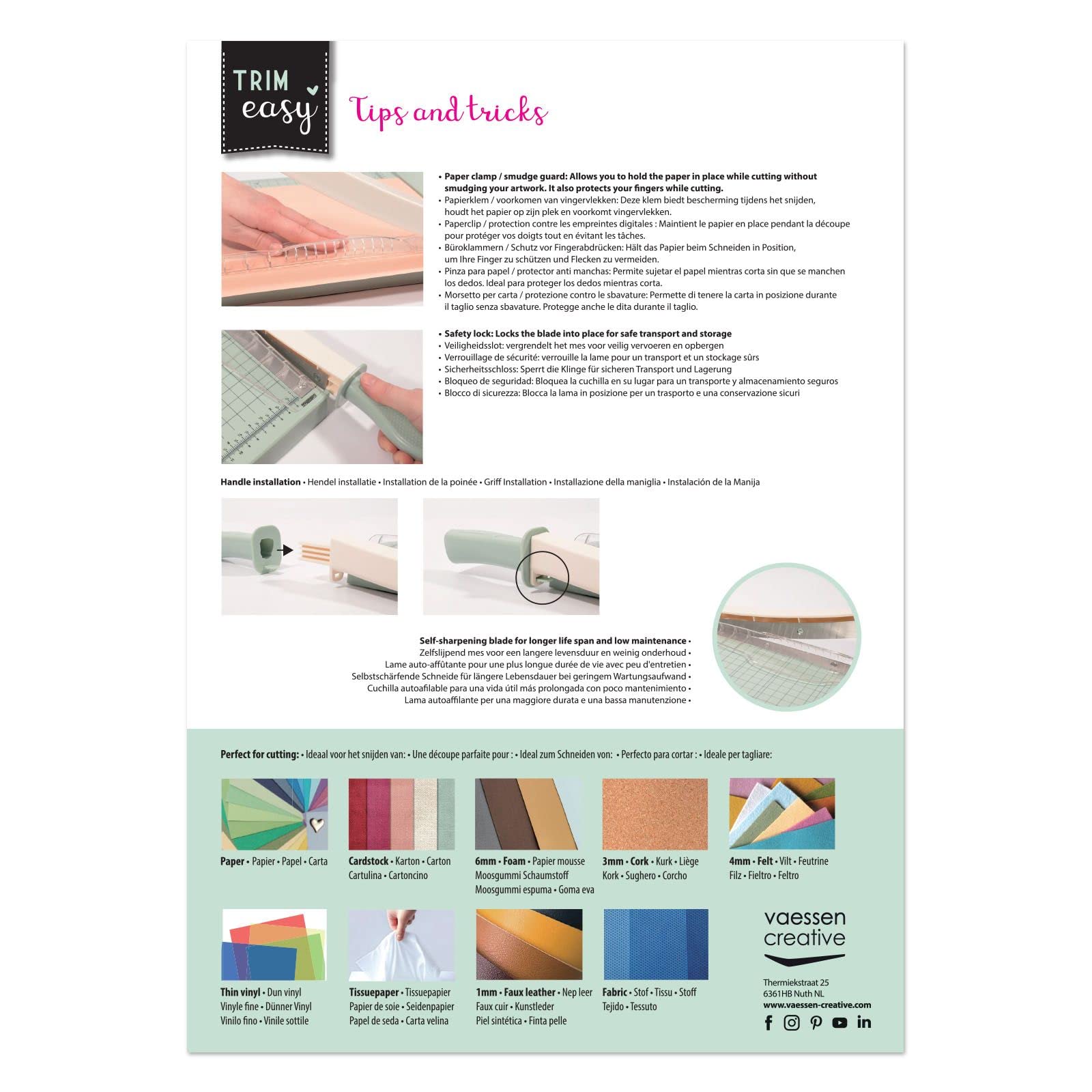 "SAFE CUTTING - Thanks to the paper clamp and the edge protector, the paper stays securely in place and your fingers are protected while cutting. Cut up to 12 sheets of 80 gsm paper at once"