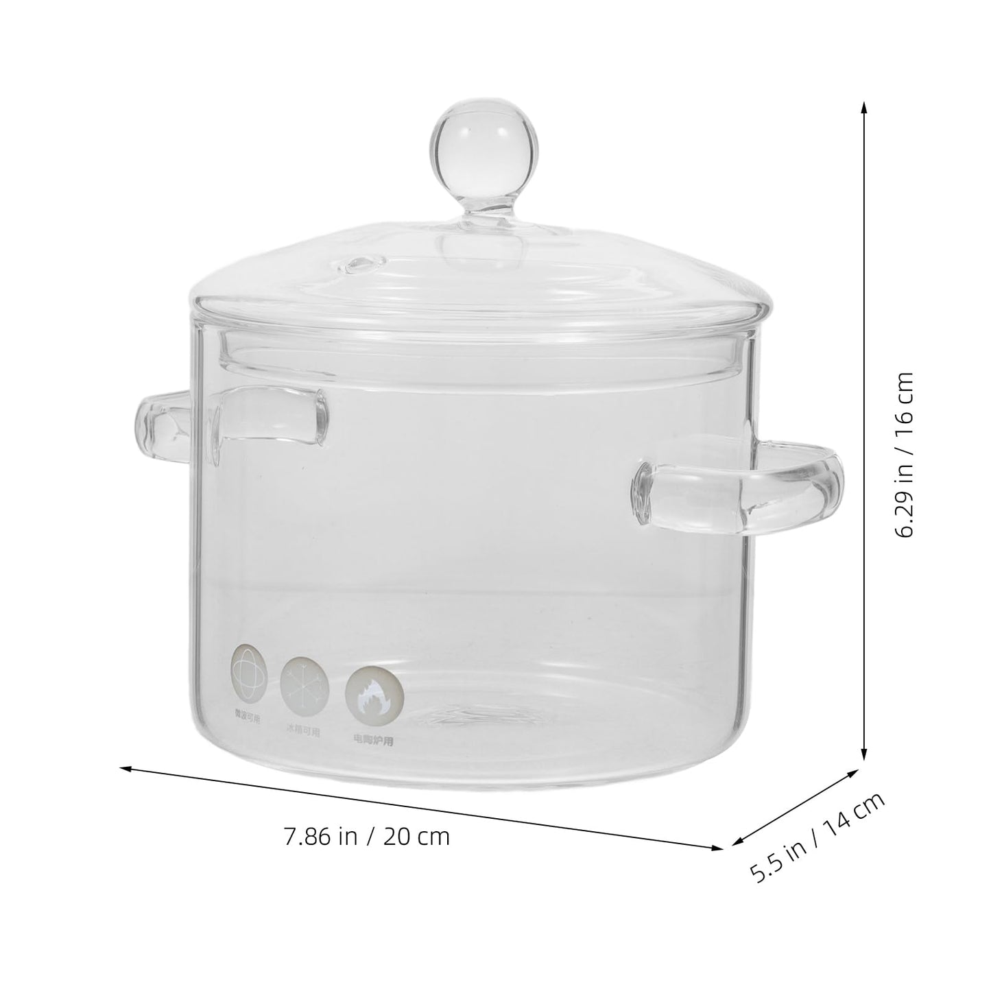 ["EASY CONTROL: OUR CLEAR GLASS saucepan with lid makes cooking process easily monitored and captures cooking time better. Double thickened glass handle to avoid burns.","MULTIFUNCTIONAL: small soup pot glass is great for making soups, stews, noodles, hot pot, milk, ramen. Even inexperienced cooks can use this saucepan to prepare delicious meals.","HEAT RESISTANT: GLASS SAUCEPAN HEAT-resistant borosilicate glass (150℃ -20℃), no need to worry about cracking or exploding. Soup pot for stove, induction, electric or ceramic hob.","FOR HEALTHY COOKING: GLASS SOUP POT WITH NON-POROUS SURFACE DOES NOT ABSORB FOODS OR FLAVORS. OIL STAIN IS EASILY CLEANED WITH A GENTLE WIPE. 1350ML/45OZ SIMMER POT 1-2 people.","PACKAGE LIST: 2X GLASS soup pot with lid. Customer experience is our top priority. Contact us with any problems. Quantity discount available." ]