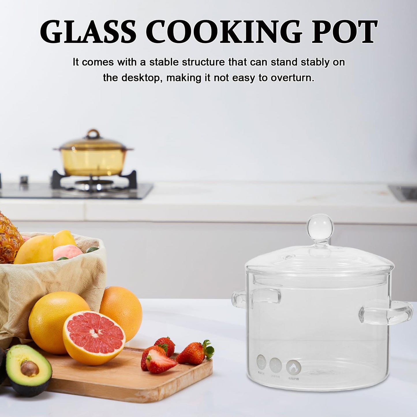 Vaguely 2 pieces glass pot with lid 1350 ml soup pot cooking pot clear simmer pot soup pot borosilicate glass cookware for stove induction