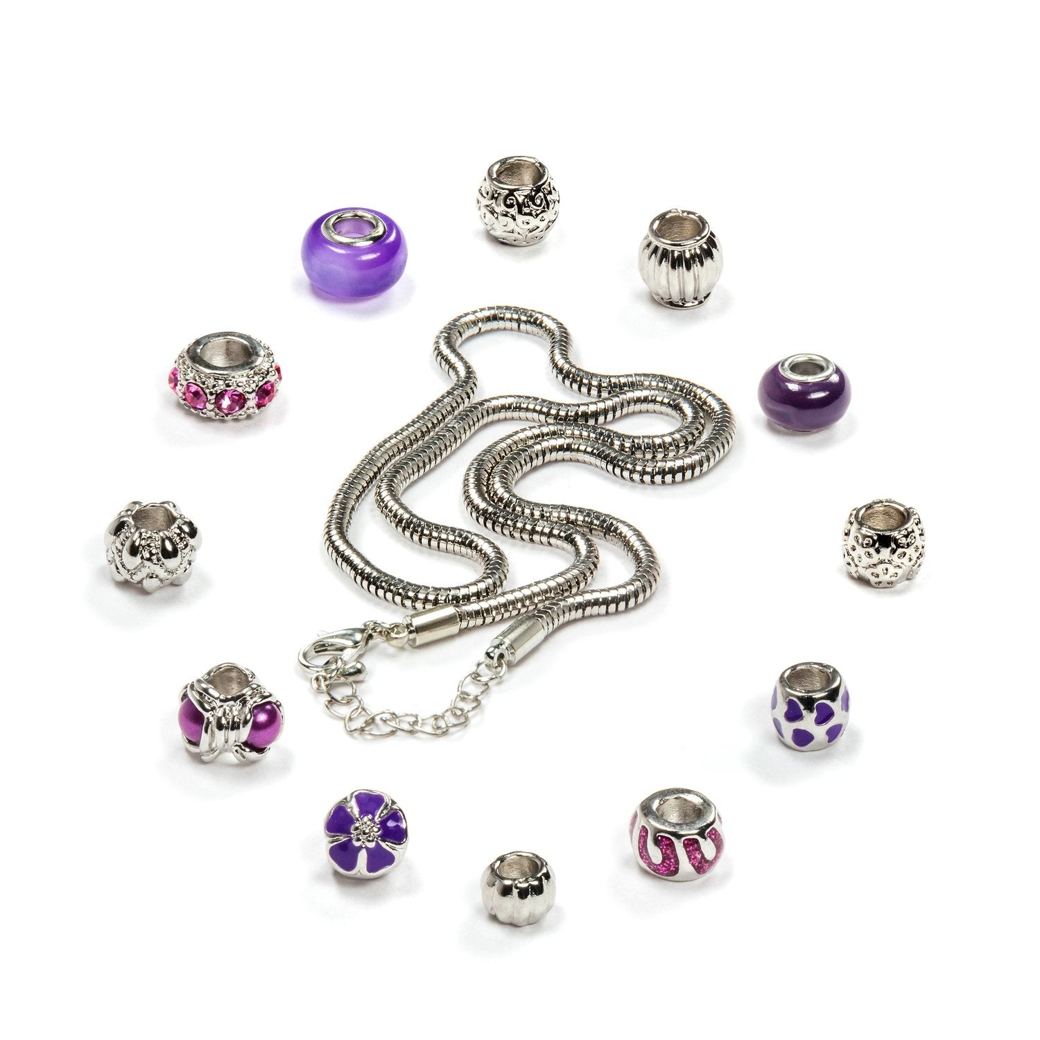 VALIOSA Merry Christmas Fashion Jewelry Advent Calendar with necklace, bracelet + 22 individual glass & metal bead pendants, a special gift for girls & women, purple, 24-piece set.