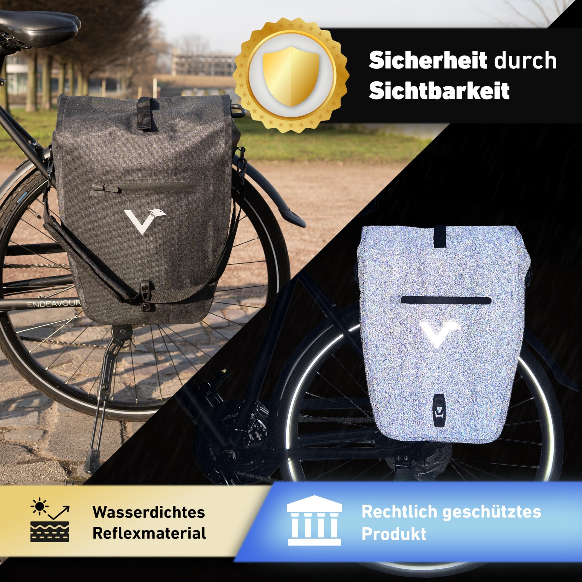 Valkentalยฎ Large & Waterproof Rear Bike Rack Bag [28L] Lockable Attachment [PVC free] Bike Bag with Large Reflectors - Includes Shoulder Strap & Inner Compartments - Tested Quality