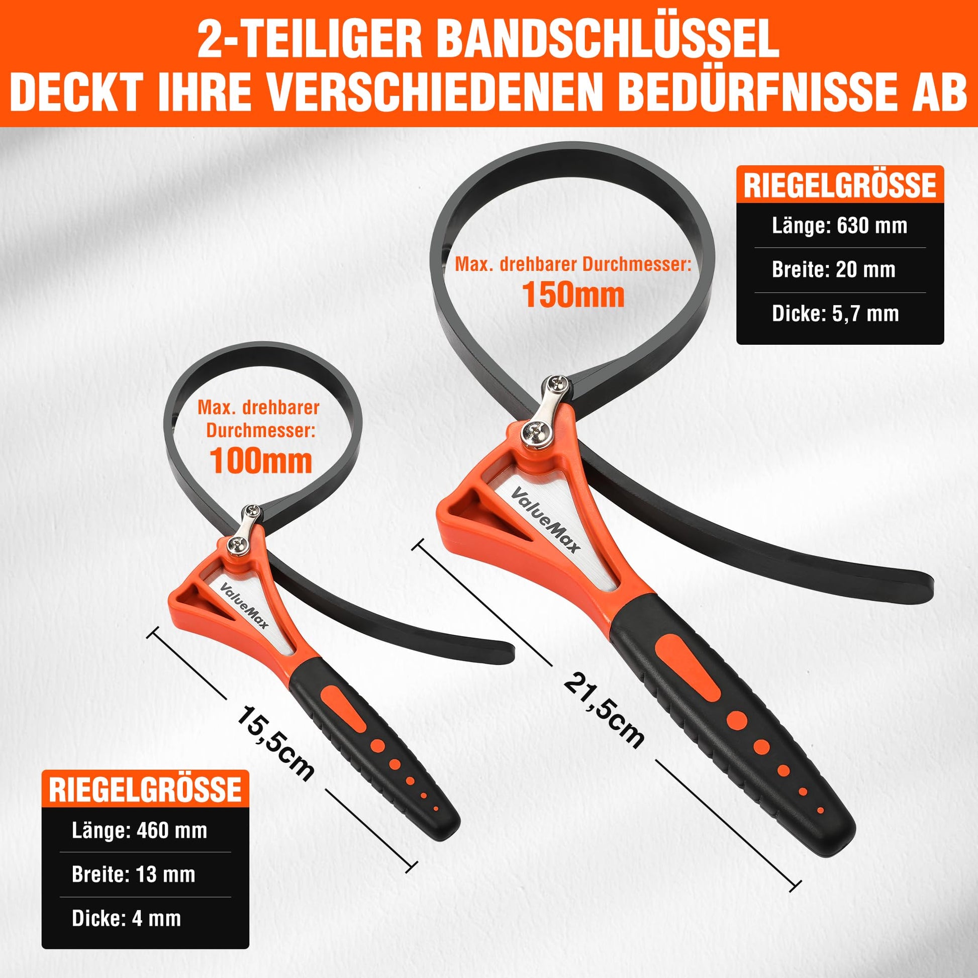 ValueMax 2-pc. band wrench set rubber pipe wrench 460mm&630mm adjustable oil filter band wrench set, universal oil filter wrench for bottle, sink, oil filter, shower heads, glass opener