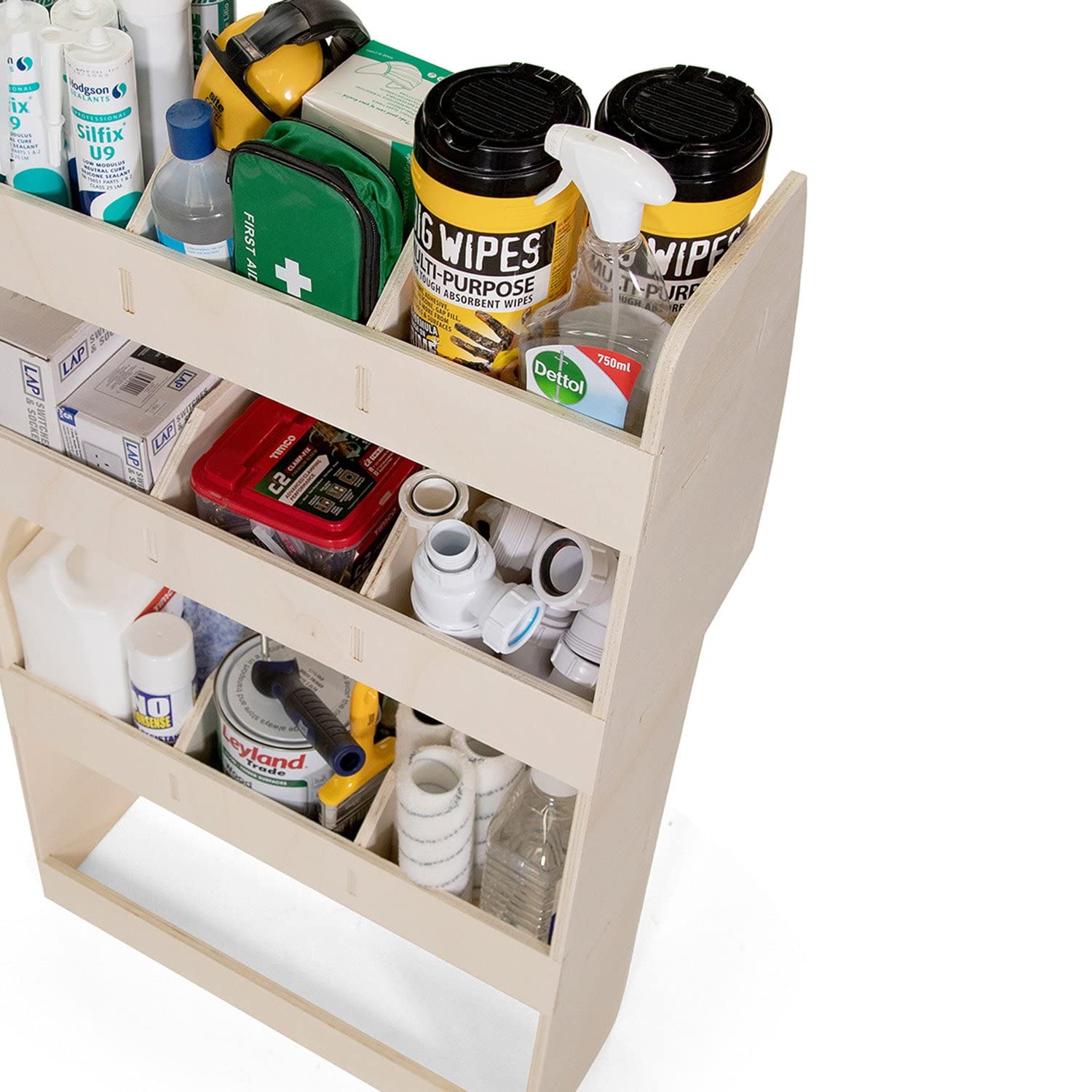 ["COMPATIBLE WITH Renault Kangoo L2 2008+ Vehicle shelves for vans specifically designed for the side profile of the KANGOO.","INCREASE STORAGE CAPACITY - Maximize space in your van. Easy organization and access to tools, consumables, and equipment with multiple storage compartments.","DURABLE - Designed to withstand everyday use. The precisely constructed interlocking shelves ensure that VANIFY's vehicle shelves can withstand bumps and vehicle vibrations.","ECO-FRIENDLY - Made in Europe from high-quality, environmentally friendly, FSC-certified hardwood plywood from sustainable EU sources.","EASY ASSEMBLY - The vehicle shelves come flat packed with all screws and bolts required for assembly. They can be assembled in just 10 minutes."]