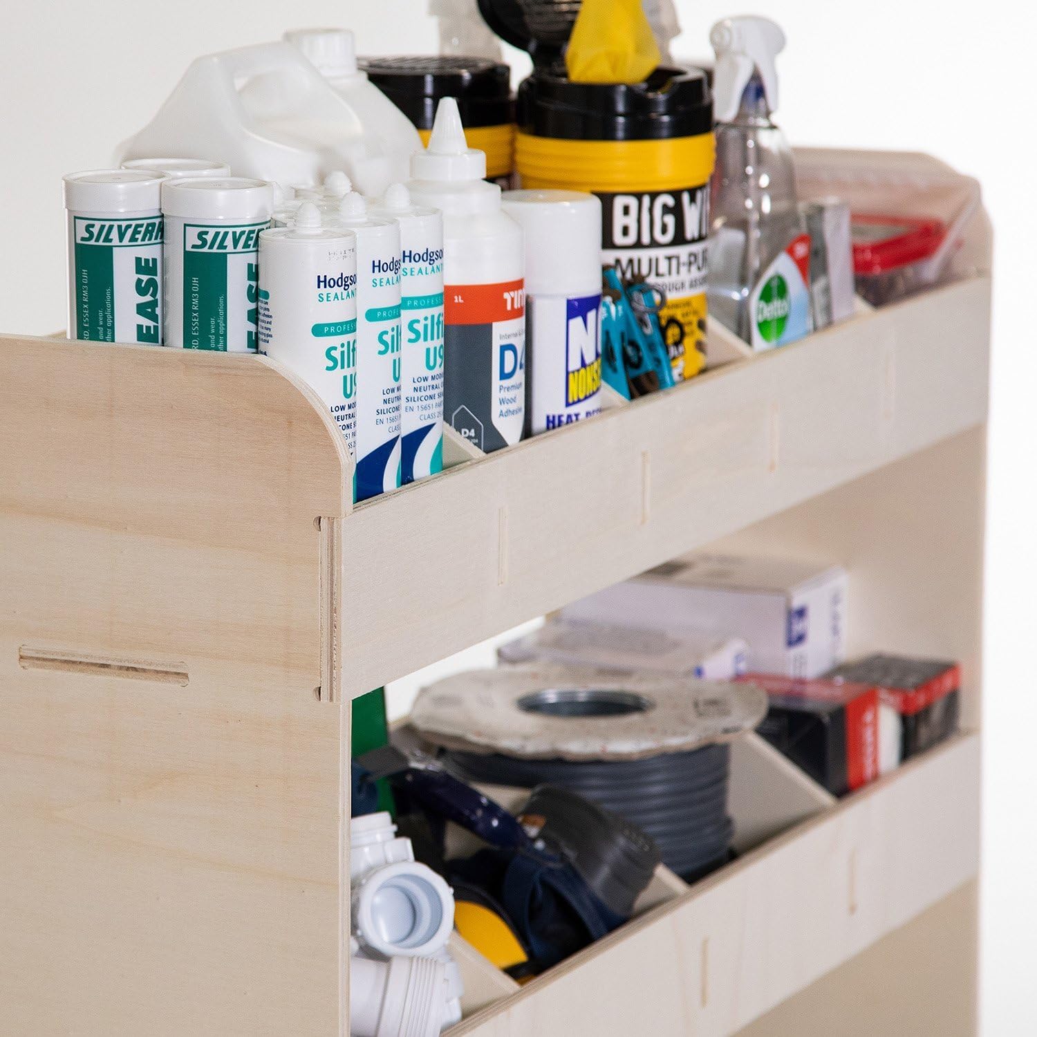["COMPATIBLE WITH Renault Trafic L1 2015+ Vehicle Shelves for Vans, specifically designed for the side profile of TRAFIC.","INCREASE STORAGE CAPACITY - Maximize space in your van. Easy organization and access to tools, consumables, and equipment with multiple storage compartments.","DURABLE - Designed to withstand everyday use. Precisely engineered interlocking shelves ensure VANIFY vehicle shelves can withstand bumps and vehicle vibrations.","ECO-FRIENDLY - Made in Europe from high-quality, environmentally friendly, FSC-certified hardwood plywood sourced from sustainable EU origins.","EASY INSTALLATION - Vehicle shelves come flat packed with all screws and bolts necessary for assembly. They can be assembled in just 10 minutes."]