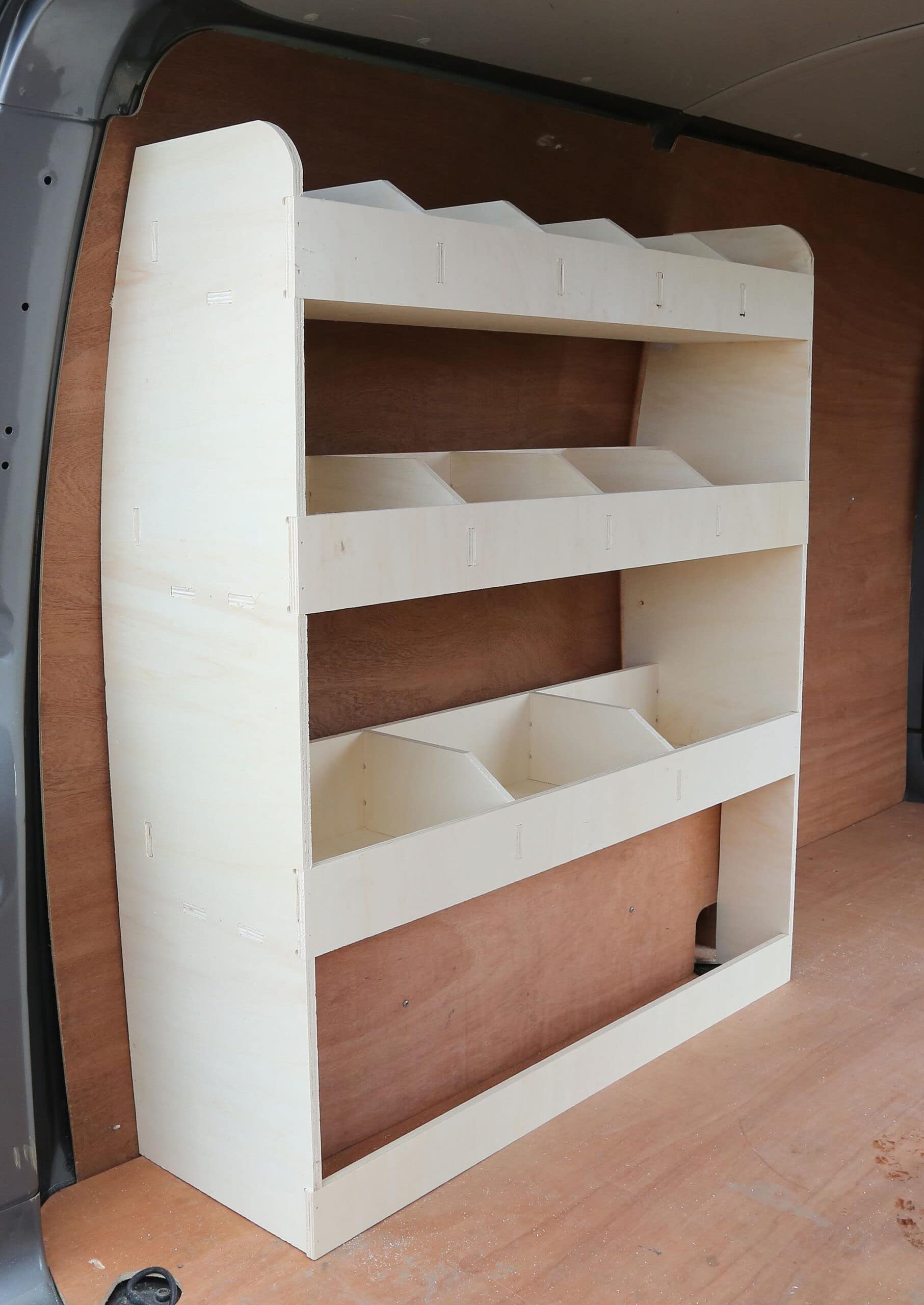 ["COMPATIBLE WITH Volkswagen Transporter T5 T6 L1 2003+ Vehicle shelves for vans, specifically designed for the side profile of TRANSPORTER T5 T6.","INCREASE STORAGE CAPACITY - Maximize space in your van. Easy organization and access to tools, consumables, and equipment with multiple storage compartments.","DURABLE - Designed to withstand everyday use. The precisely engineered interlocking shelves ensure VANIFY vehicle shelves can withstand bumps and vehicle vibrations.","ECO-FRIENDLY - Made in Europe from high-quality, environmentally friendly, FSC-certified hardwood plywood from sustainable EU sources.","EASY ASSEMBLY - The vehicle shelves are delivered flat-packed with all screws and bolts needed for assembly. They can be assembled in just 10 minutes."]