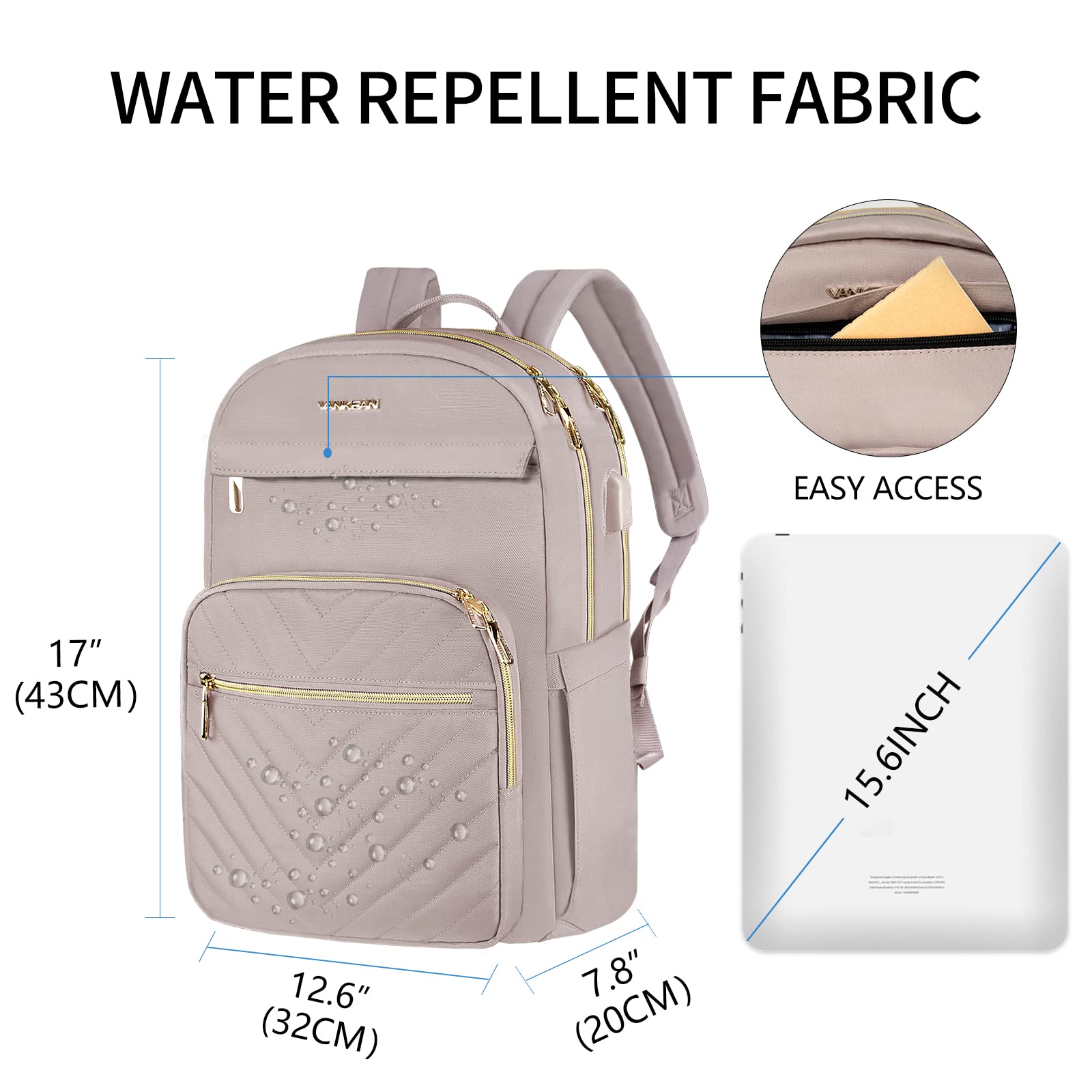 VANKEAN 15.6 inch Laptop Backpack for Women, Waterproof School Backpack for Men and Women with USB Charging Port for University, Business, Work, Travel, Camping, Pink