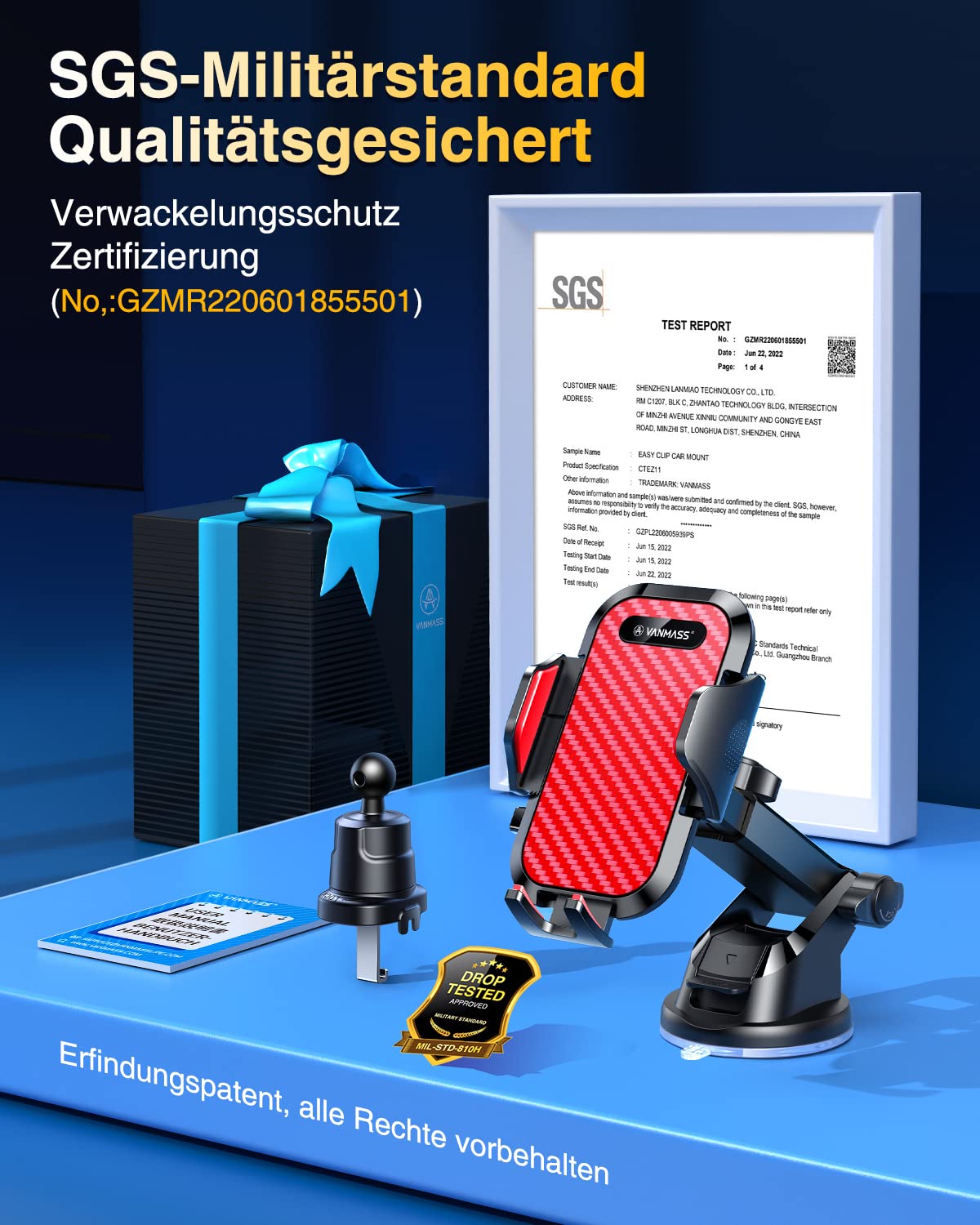"Enjoy the highest standards - VANMASS car phone holder has conducted over 3000 surveys and top 100 product analyses, listened to the voices of over 6,500,000 users, passed the safety certifications of EPUIO, CP65, REACH, ROHS. As the Great Master said: Good design is well thought out to the last detail, that's what we constantly strive for.",