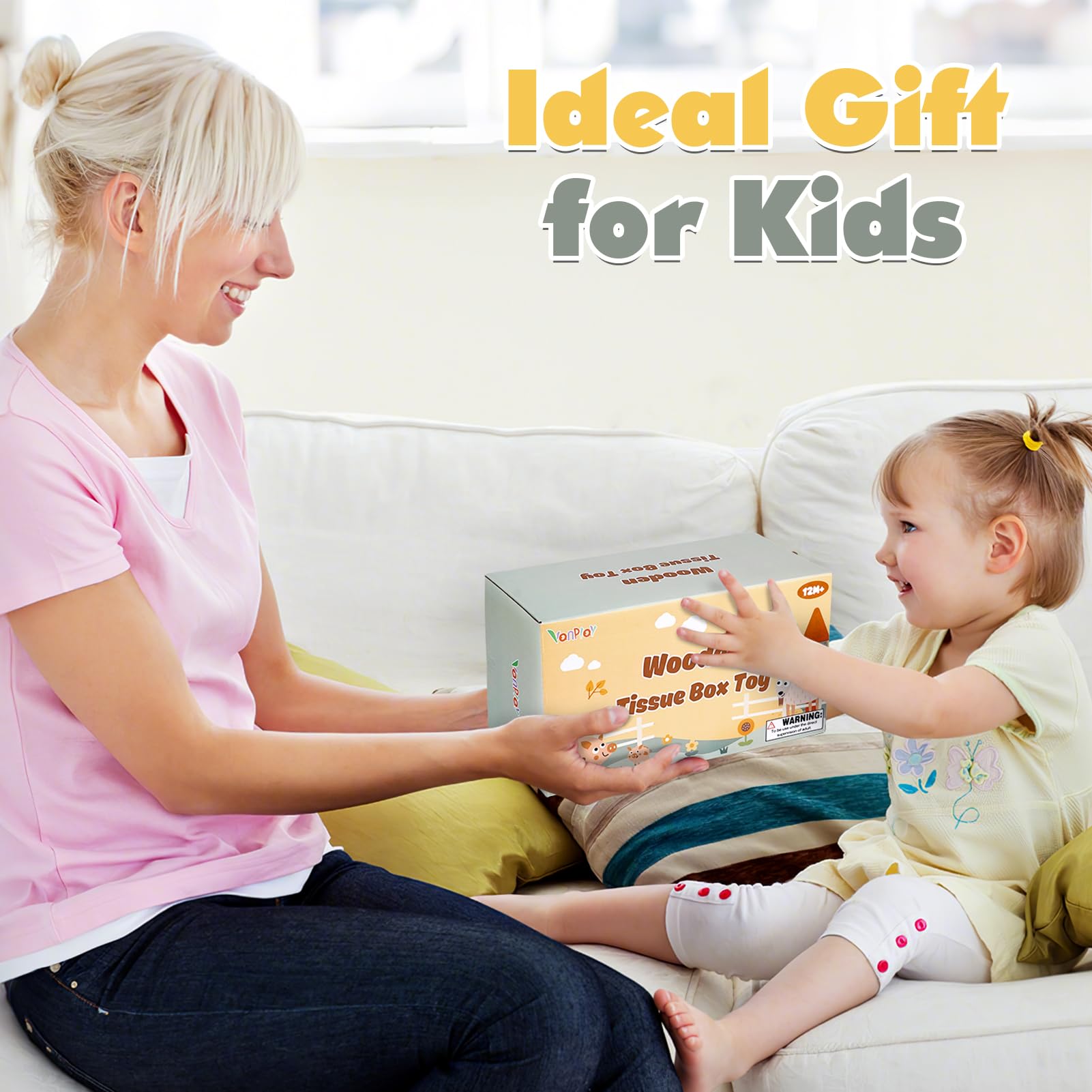 Vanplay Montessori toy for babies 12 months, 6 in 1 fabric box baby toy for 1 year olds, wooden motor skills toy for 1 2 3 year old girls and boys, gift for 1 year old child.