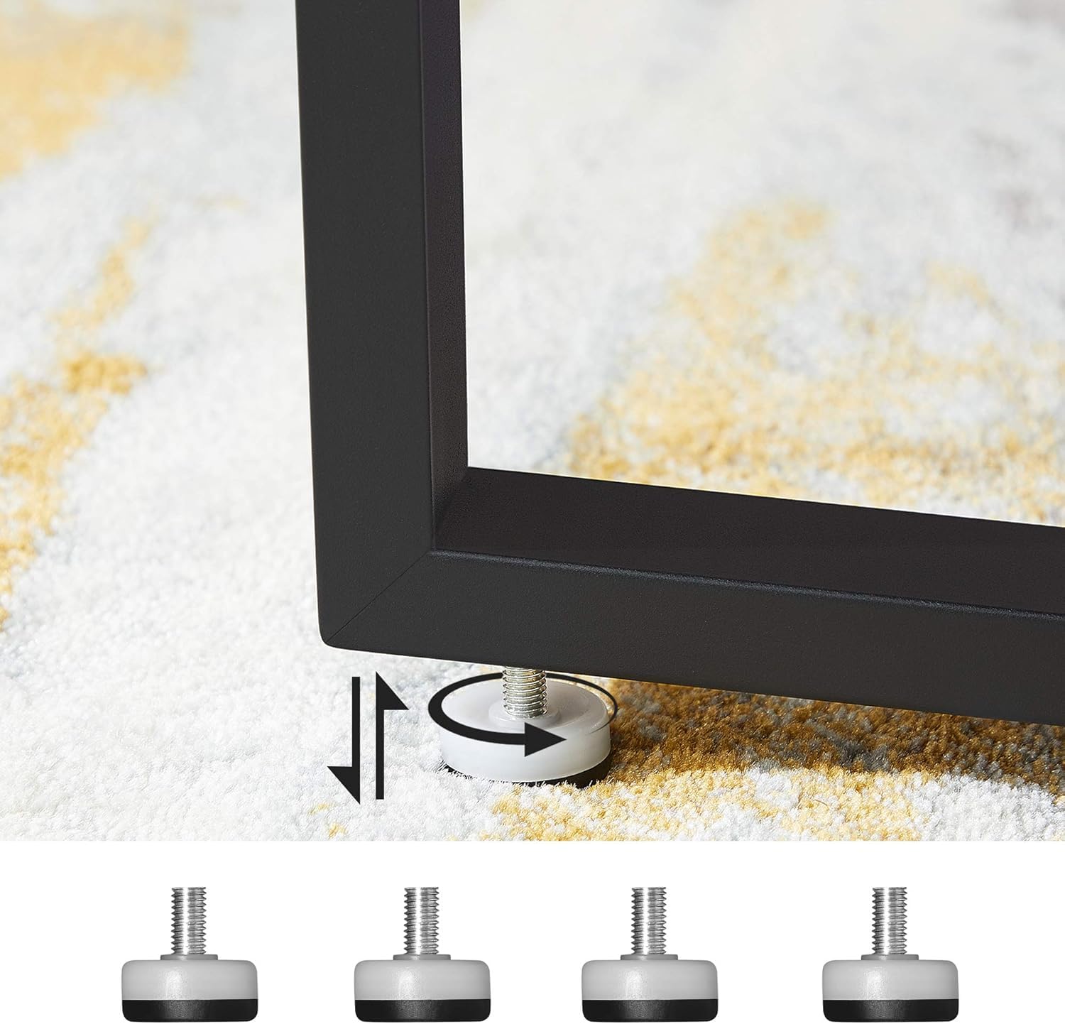 ["HAPPY HOURS - Invite your friends to a game afternoon or movie night. This large round table measuring 88 x 47 cm (Ø x H) is an ideal companion for playing checkers in comfort and for aperitifs.", "Set up in minutes: With only 3 parts, assembly is child's play! Since all the screws are the same, you can't go wrong.", "UNIQUE FEATURES - Leave boring tables behind. With unique original legs made of matte black iron and a round rune table top, this table brings a touch of charm and novelty to your living room.", "Durable: A heavy vase with flowers? Beautiful ceramic decorations? Complement and customize this living room table to your liking. Its durable iron legs and technical wood tabletop support up to 100 kg.", "Decor idea: Bring your decor ideas to life with this coffee table measuring 88 x 47 cm (Ø x H), transform your home into a dream house now. This living room table is part of the ALINRU collection"]