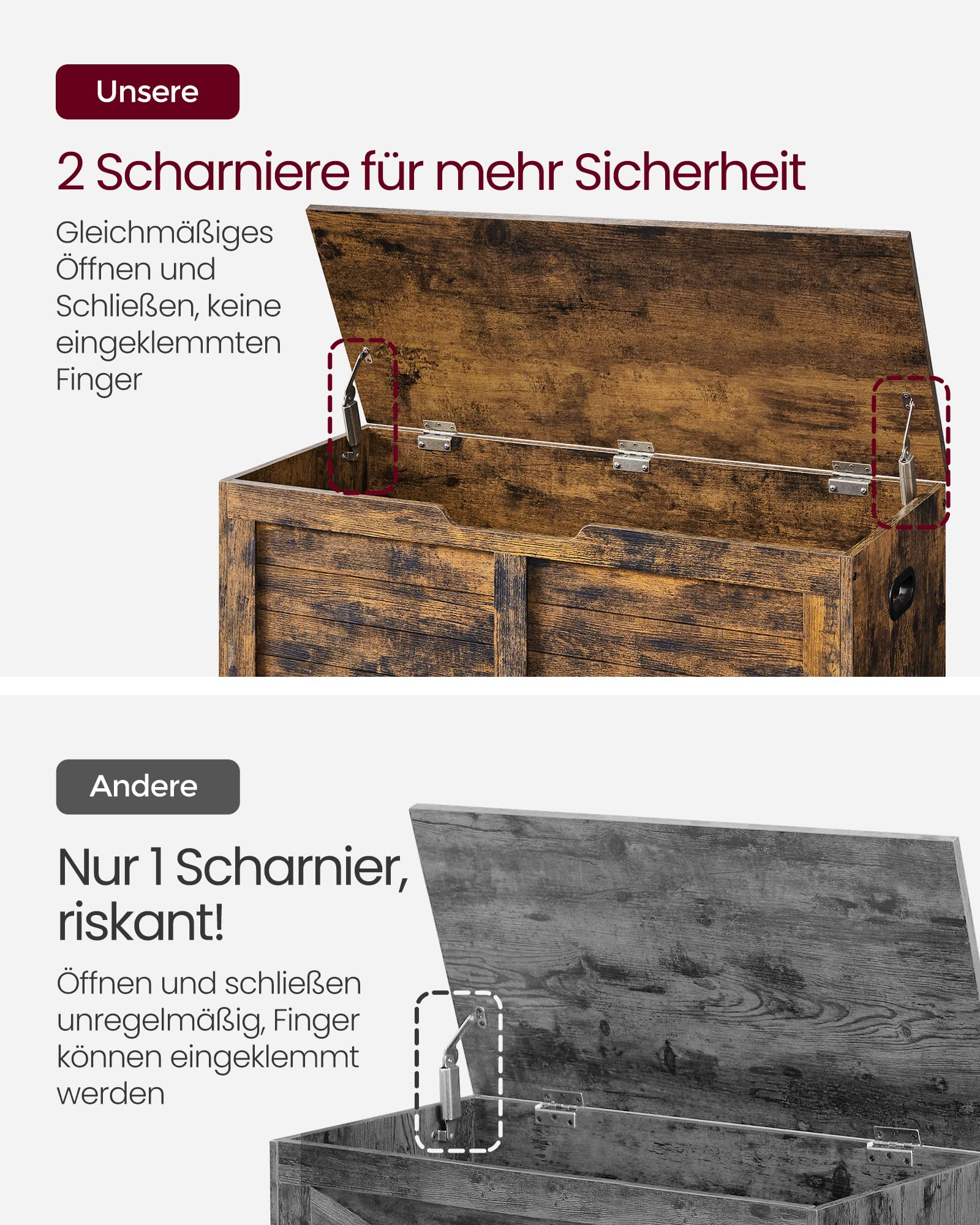["【PLENTY OF STORAGE SPACE】This 40 x 100 x 46 cm storage box with lid has a spacious compartment where you can store your blankets, pillows, clothes, and books to keep your bedroom neat and tidy.","【2 SAFETY HINGES FOR ADDED SECURITY】The lid is equipped with two sturdy hinges that ensure it can stay open at any angle and close gently, preventing any danger of your fingers getting caught.","【HIGH LOAD CAPACITY】The surface can support up to 136 kg and the compartment up to 60 kg, allowing you to comfortably sit on the bench and change shoes while storing plenty of items in the hidden compartment of the storage bench.","【WIDE, COMFORTABLE SIDE HANDLES】Thanks to the 2 cut-out, user-friendly side handles, this storage bench can be easily and effortlessly moved to wherever you need additional storage or seating.","【EASY ASSEMBLY】The easy-to-understand instructions and labeled parts make assembling the shoe bench with seating a breeze. You can quickly set up the storage bench in the bedroom, living room, or hallway!"]