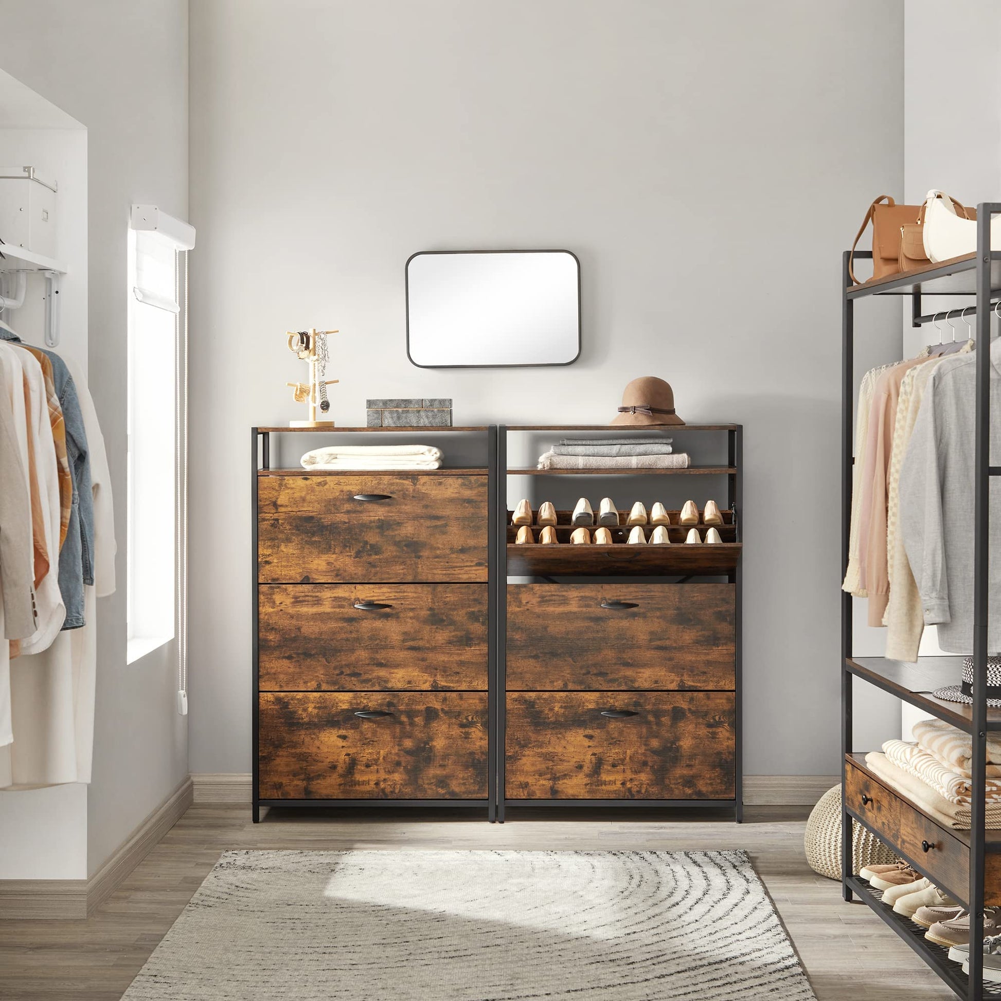 VASAGLE Shoe Cabinet, Slim Shoe Rack, Shoe Cupboard with 3 Flaps, for 15-24 Pairs of Shoes, Space-saving, Dustproof, 30 x 80 x 130 cm, for Hallway, vintage brown-black LBS802B01