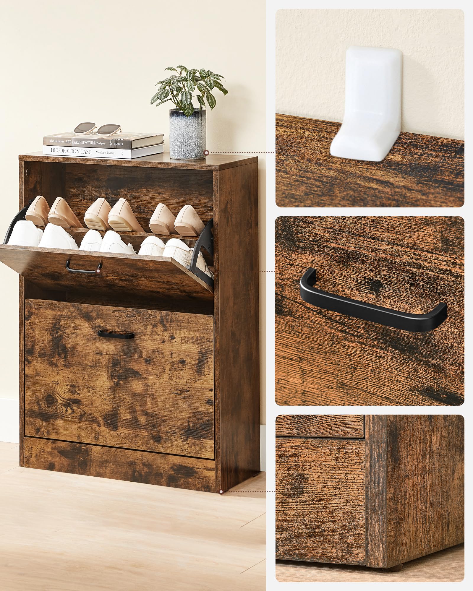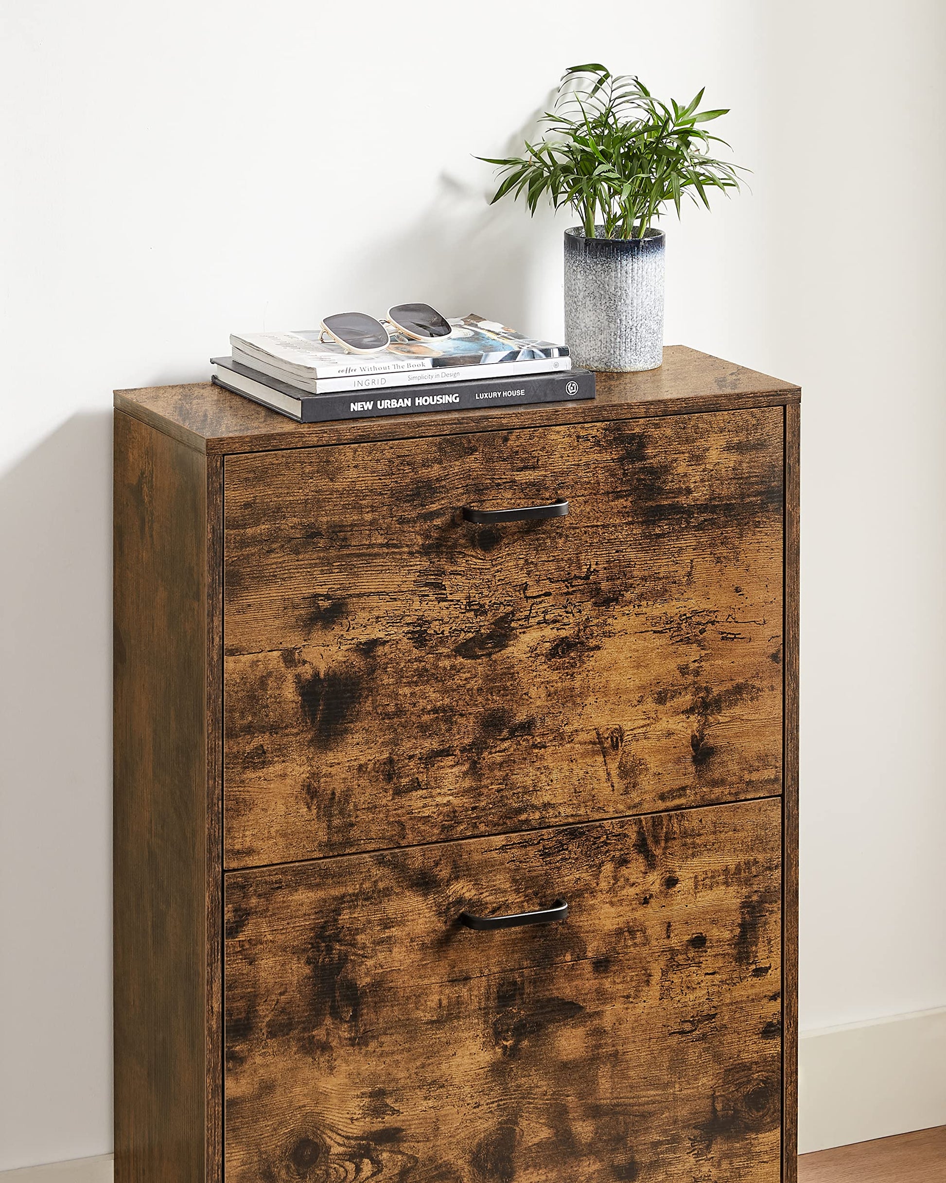 VASAGLE shoe cabinet with 2 flaps, shoe rack, adjustable and removable partitions, for 12 pairs of women's shoes or 8 pairs of men's shoes, small hallway, 60 x 24 x 83.5 cm, vintage, dark brown LBC02BX.