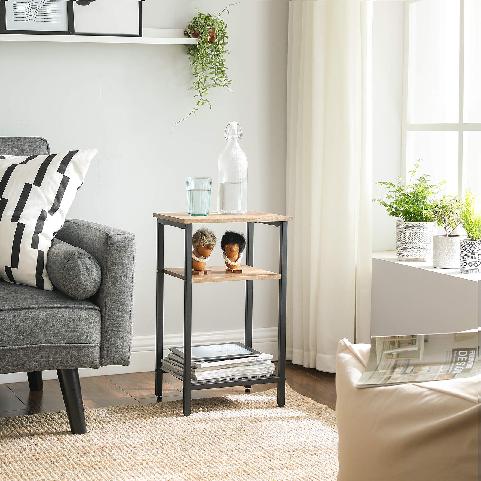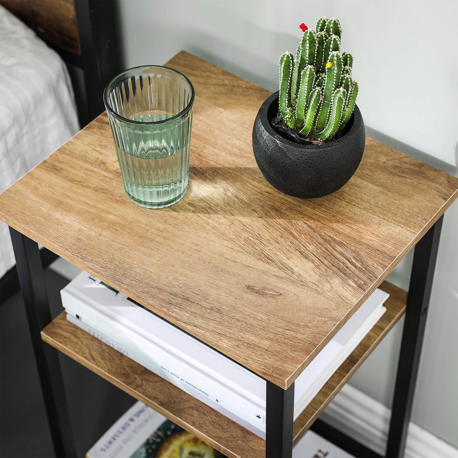 VASAGLE Side Table, Nightstand, Small Coffee Table, Bedroom, Living Room, Easy Assembly, Stable, Steel Frame, Industrial Style, Honey Brown-Black LET201B05, 34 x 29 x 58 cm