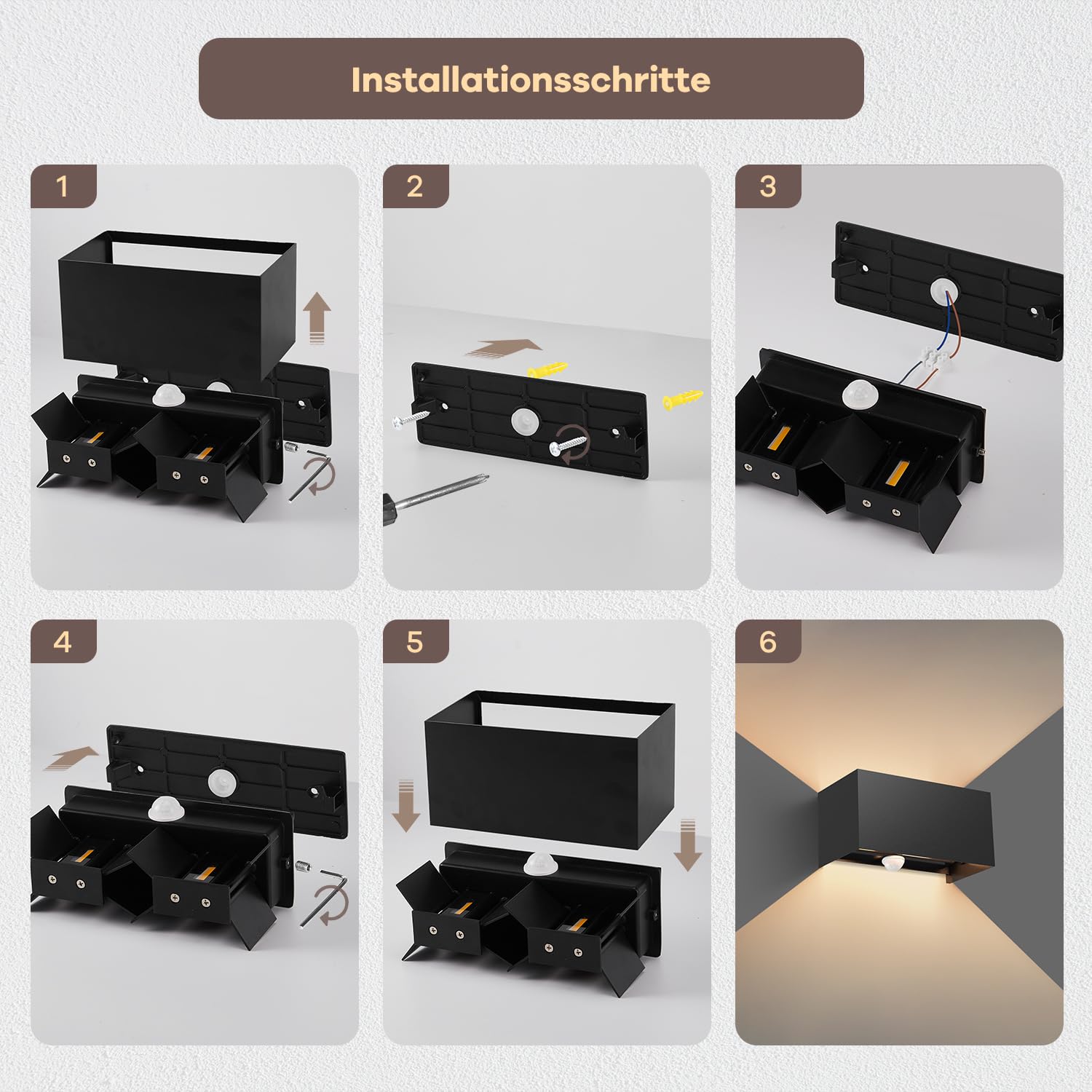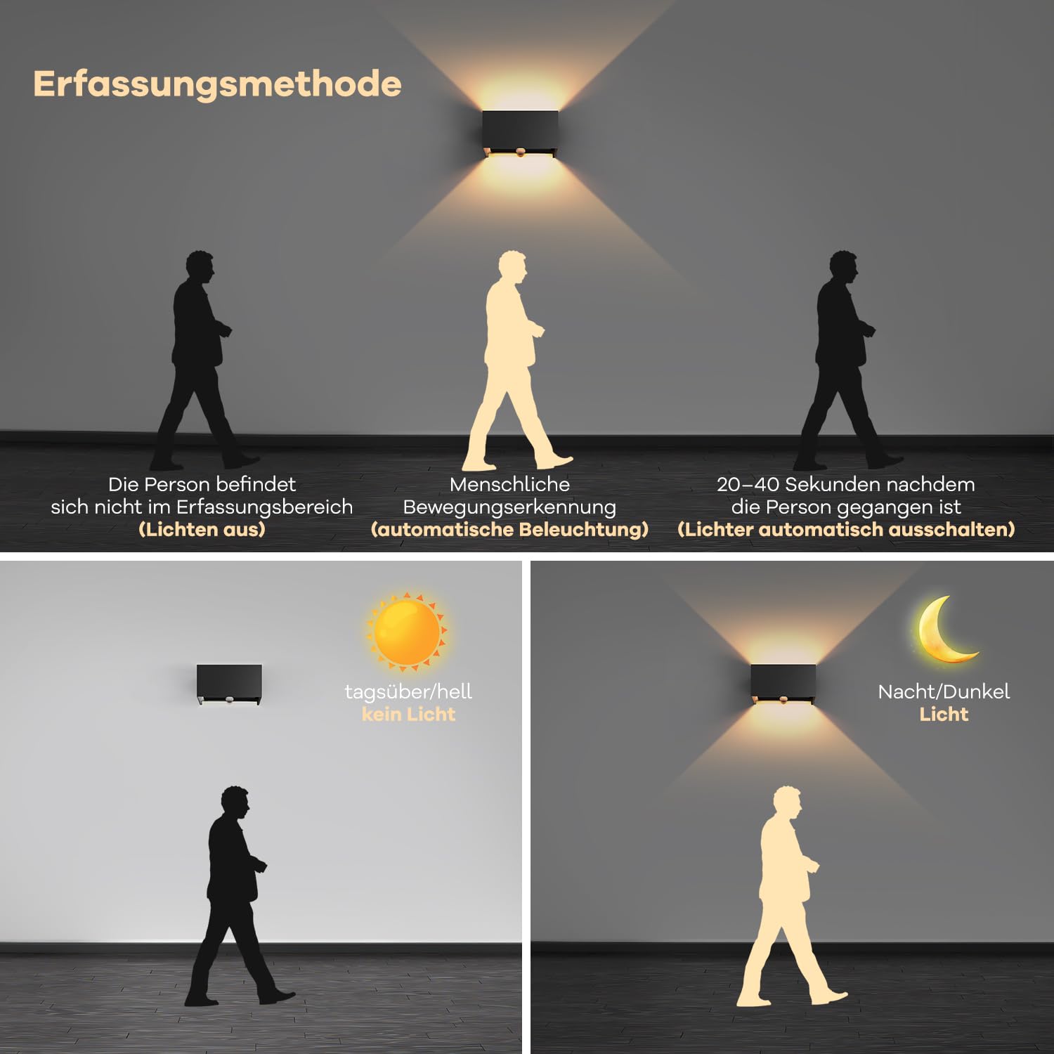 "✅【Suitable for Indoor and Outdoor】These waterproof ED wall lamps with motion sensor can be installed outdoors in parks, gardens, etc. It is also suitable for indoor areas such as living rooms, bedrooms, hotels, balconies, hallways."