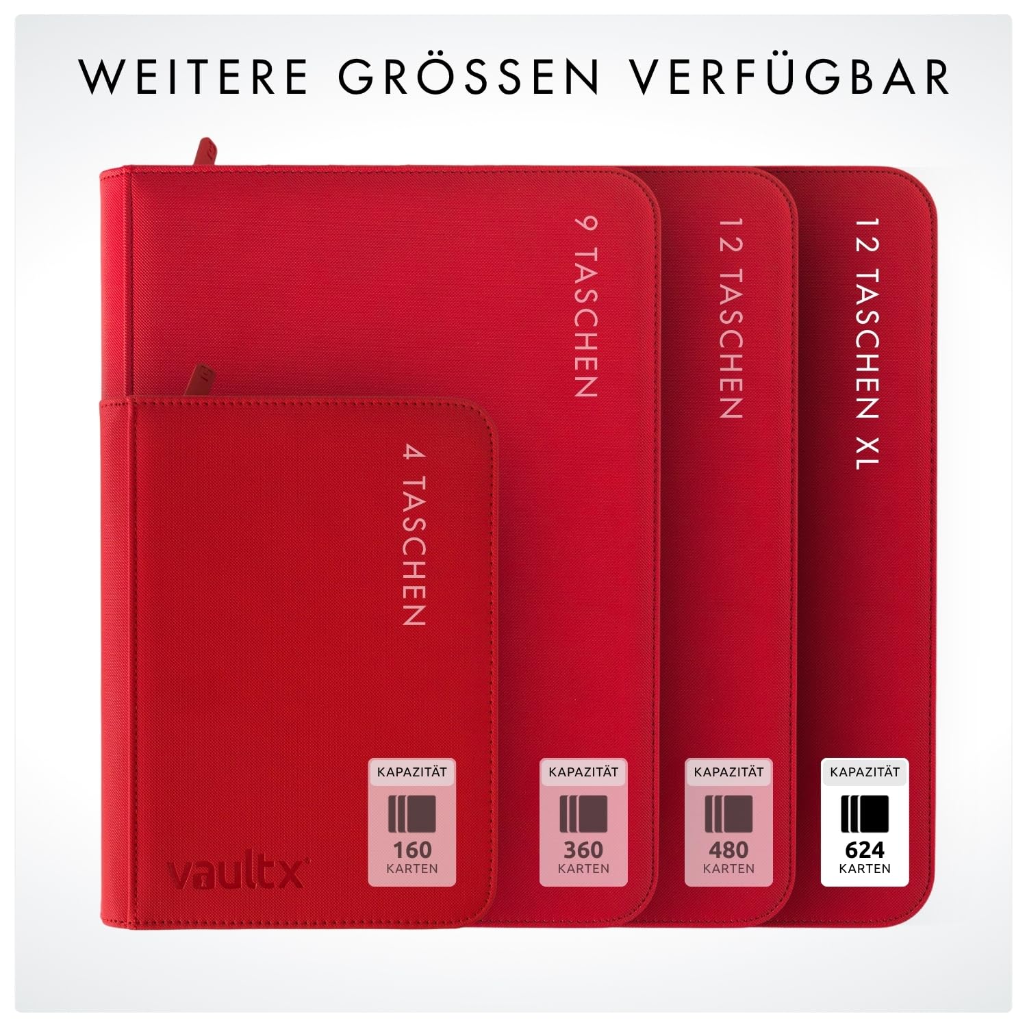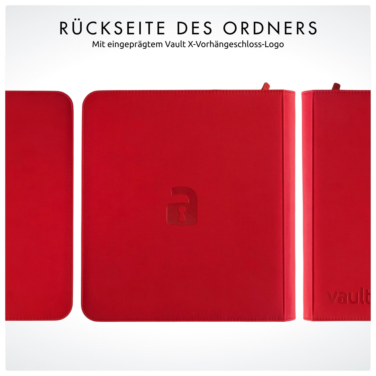 Vault X 12 XL Pocket Trading Card Binder with Zipper, 624 Cards, Premium Exo-Tec Album Material, 26 Side-Loading Pages, Collectors Binder for Trading Card Games, Sports Cards, TCG (Red)