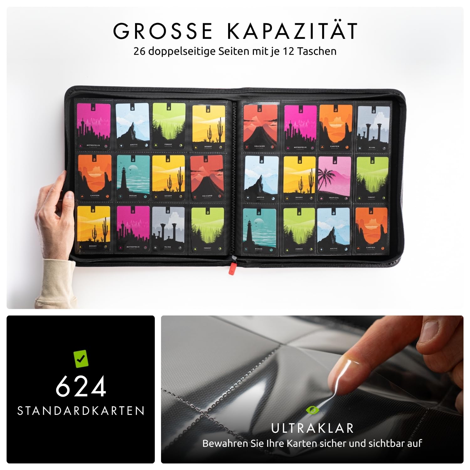 PREMIUM CARD PROTECTION - Made from archival-safe, acid-free, and PVC-free materials, this binder reliably protects your collection from dust, moisture, and damage. A high-quality zipper ensures that the cards are securely closed and protected.