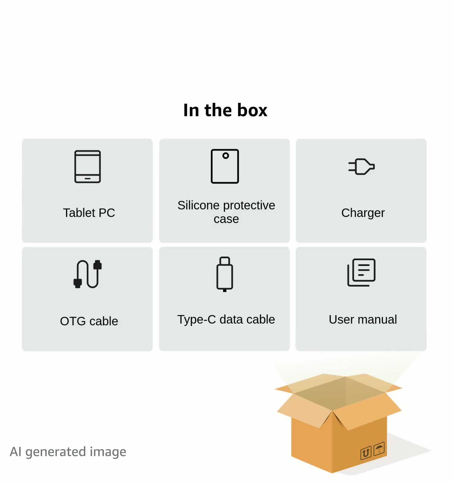 "【Package Contents】1 piece * Tablet PC with silicone protective case, 1 piece * 5V/2A charger, 1 piece * OTG cable, 1 piece * Type-C data cable, 1 piece * User manual & warranty card. We offer 12 months worry-free warranty. Customer satisfaction is our top priority. If there is any issue with the use of the kids' learning tablet, please feel free to contact us via Amazon."]