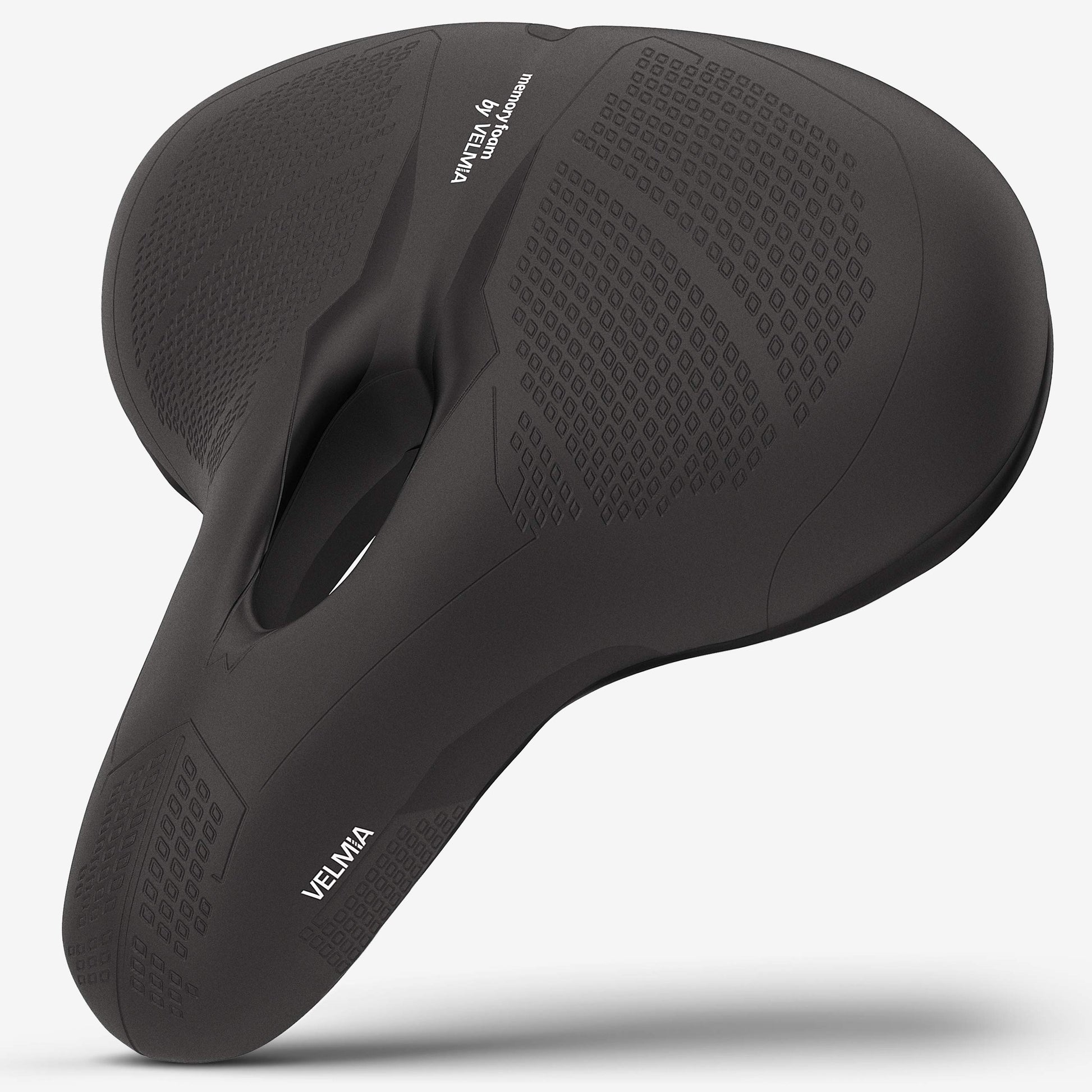 ["HIGH QUALITY MEMORY FOAM - The memory foam polymer of the bike saddle for ladies & men features the special memory effect and ensures comfortable sitting on regular bikes & E-bikes!","FUNCTIONAL AIR CIRCULATION - The special groove of the unisex bike seat ensures constant air circulation, preventing unwanted sweating in the intimate area!","ONE HUNDRED PERCENT WATERPROOF - The bicycle saddle, with a width of 22.8 cm, provides an optimal fit and is 100% waterproof due to the additionally welded seams!","THREE DIFFERENT MODELS - The Bicycle Seat comes in three specific designs, allowing you to choose the perfect saddle based on your sitting posture and riding style!","CUSTOMER-ORIENTED START-UP – VELMIA offers you a reliable German customer service and includes an illustrated manual for quick and easy assembly!"]