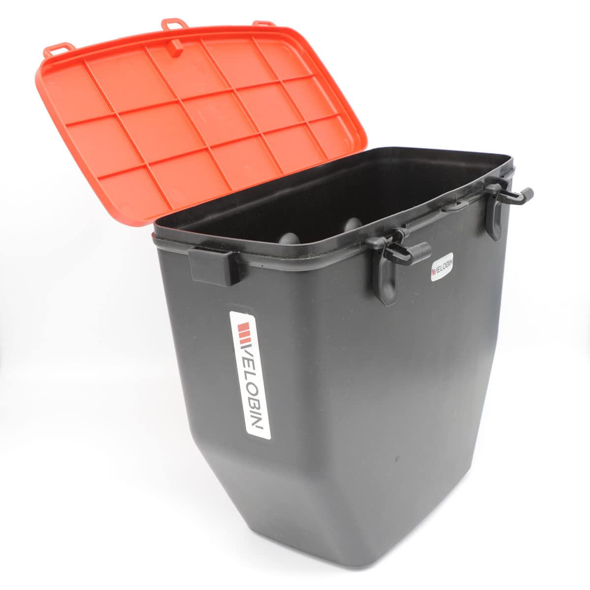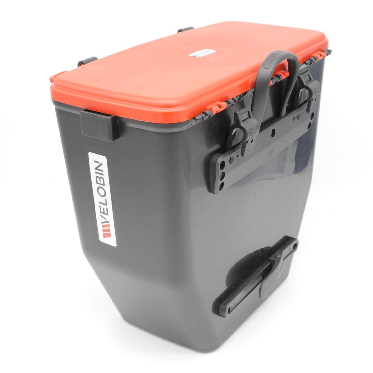 ["Robust, strong and 100% waterproof", "Fits almost all bike racks", "17.5 liters / up to 22 lbs per velobin", "Lockable and lightweight (2.43 lbs)", "No flapping or getting caught in your wheel spokes", "Perfect for high visibility stickers", "Made from 100% recycled plastic", "Built to withstand daily commuting", "5 year warranty!"]