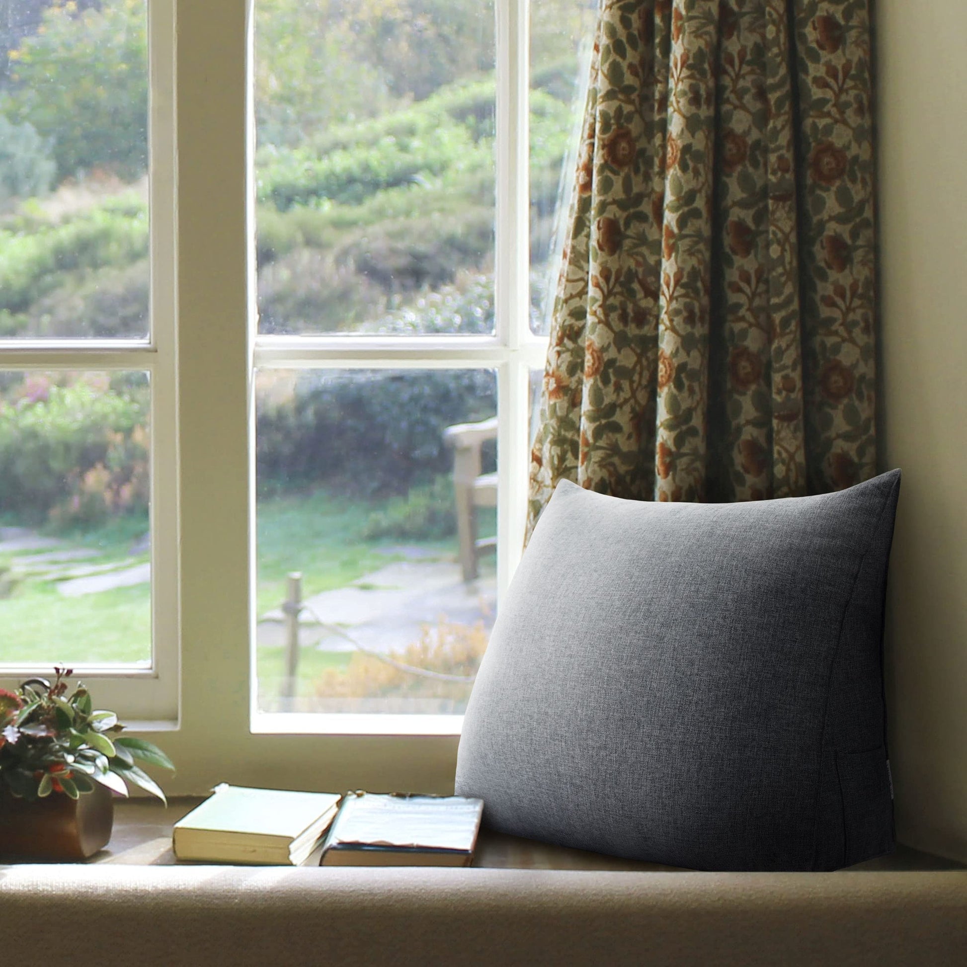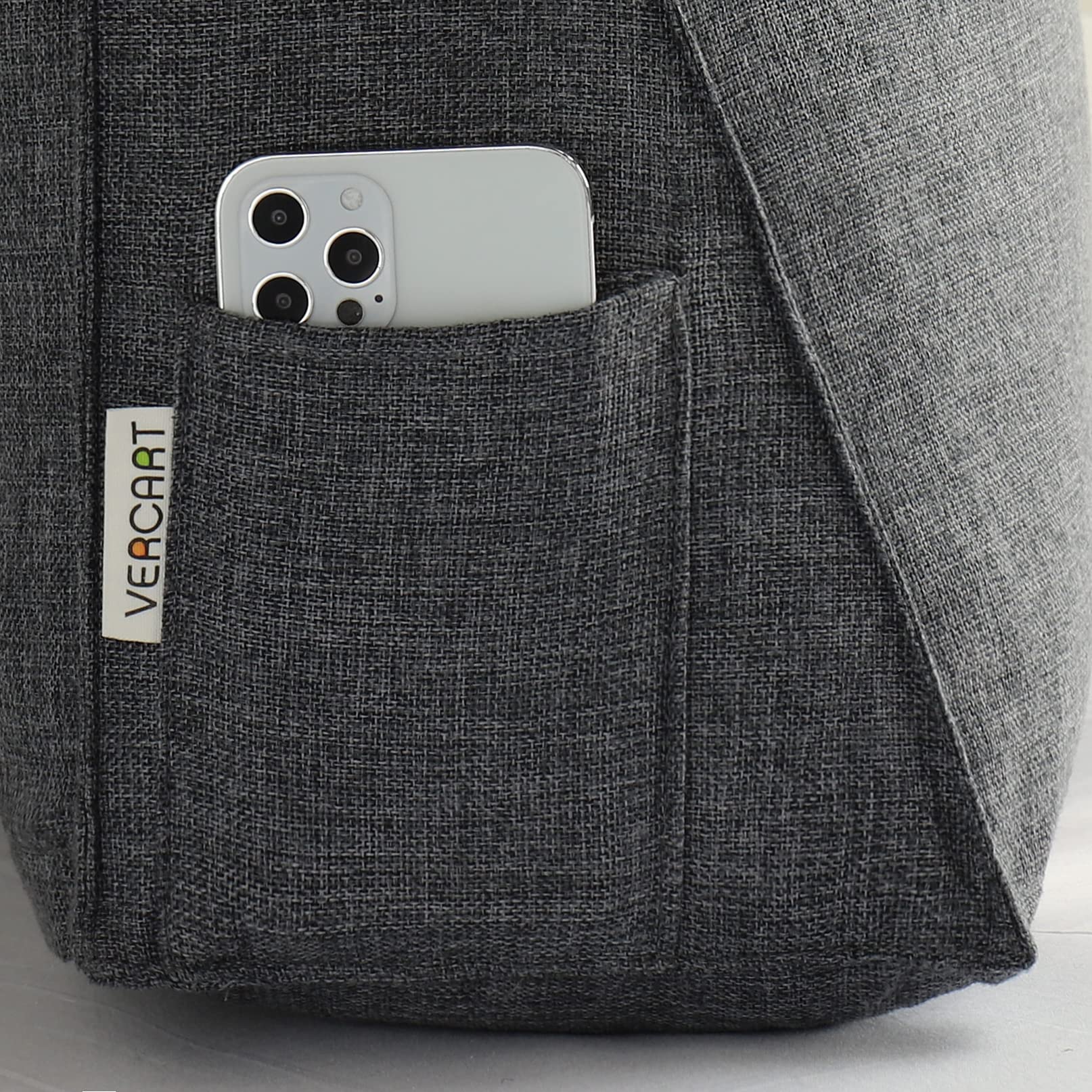 VERCART Back Cushion for Bed Wedge Reading Pillow Sofa, Modern Large Sofa Pillow Back Cushion Headboard Padded Wall Pillow, Wedge-shaped Couch Pillow Linen Anthracite Gray 60cm