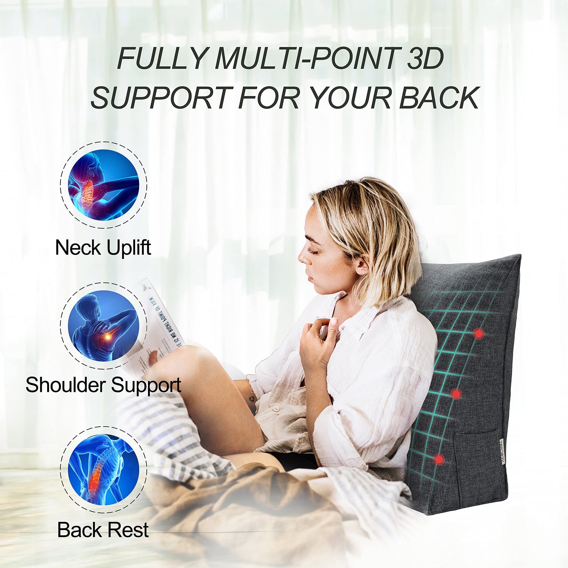 "Excellent bed pillows: There is no better place to read than on your bed, snuggled in a comfortable and relaxing backrest wedge pillow for your back. This reading pillow provides excellent support for maximum comfort while reading and watching TV."