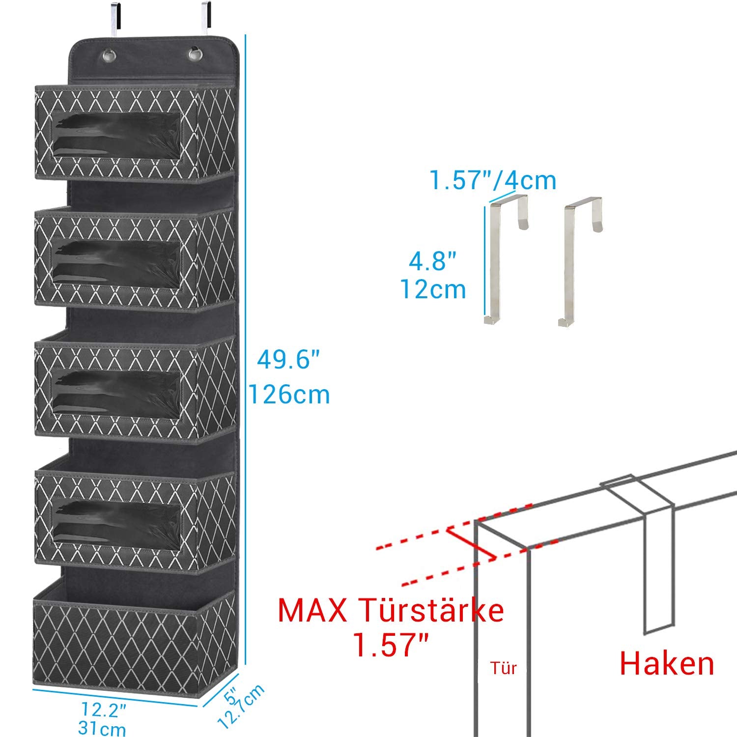 VERONLY Hanging Organizer Door Organizer Hanging Bathroom, Hanging Storage with 5 Large Pockets with Window and 2 Metal Hooks, Hanging Shelf for Nursery Bedroom Office Bathroom