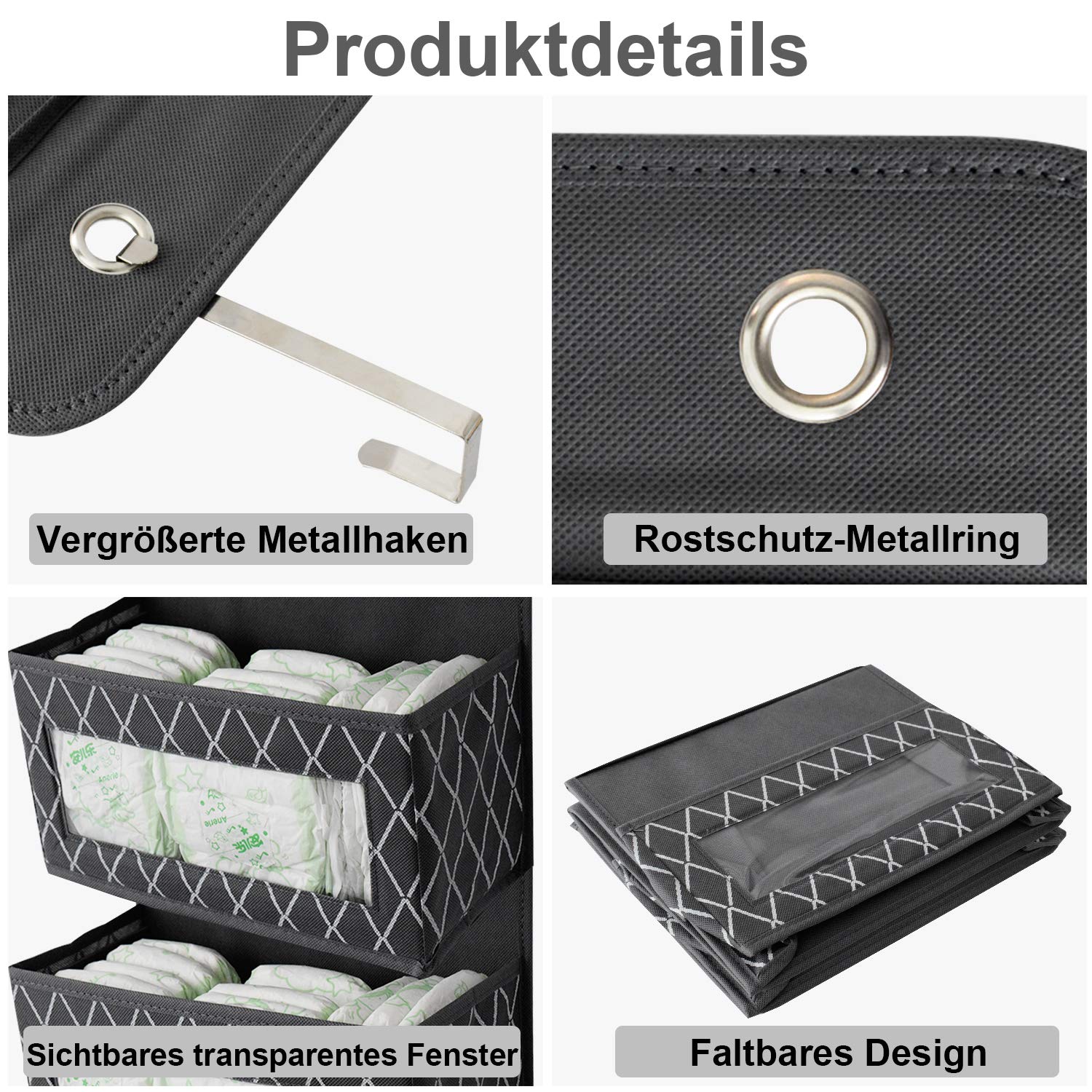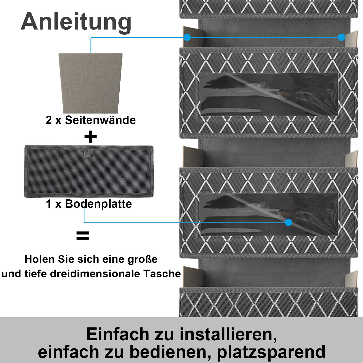 ["👓【Durable & High Quality】 Door organizer hanging organizer made of breathable, odorless non-woven fabric. Each pocket at the bottom and on both sides contains sturdy cardboard to maintain its shape very well. Unlike other back designs, our hanging door organizer also contains sturdy cardboard on the back, making our item very sturdy and beautiful.","🌈【Large Capacity】Extra Large bathroom organizer hanging design Product size: 49.6 x 12.2 x 5 inches. Has 5 large multifunctional compartments, each pocket size 12.2 x 5 x 6 inches.","🧣【Versatile Design】 Door organizer for bathroom can neatly store and classify socks, diapers, baby wipes, panties, toiletries, scarves, hats, towels, bottles, toys, snack food supplies, bath and beauty items, and other personal or family items. You can place it in children's rooms, bathrooms, pantries, laundry rooms, playrooms, apartments.","🥰【Easy to Assemble】The hanging door organizer can be hung on most doors and shelves with two metal hooks that fit most doors, or it can be mounted on the wall with nails or through the wear-resistant holes of the hooks.","💖【Foldable & Clear Window】 The foldable hanging shelf with clear window design allows you to quickly find what is neatly stored inside the bathroom hanging organizer. When not in use, it can be folded and placed behind the door, under the bed, or in a drawer to save space in your home."]