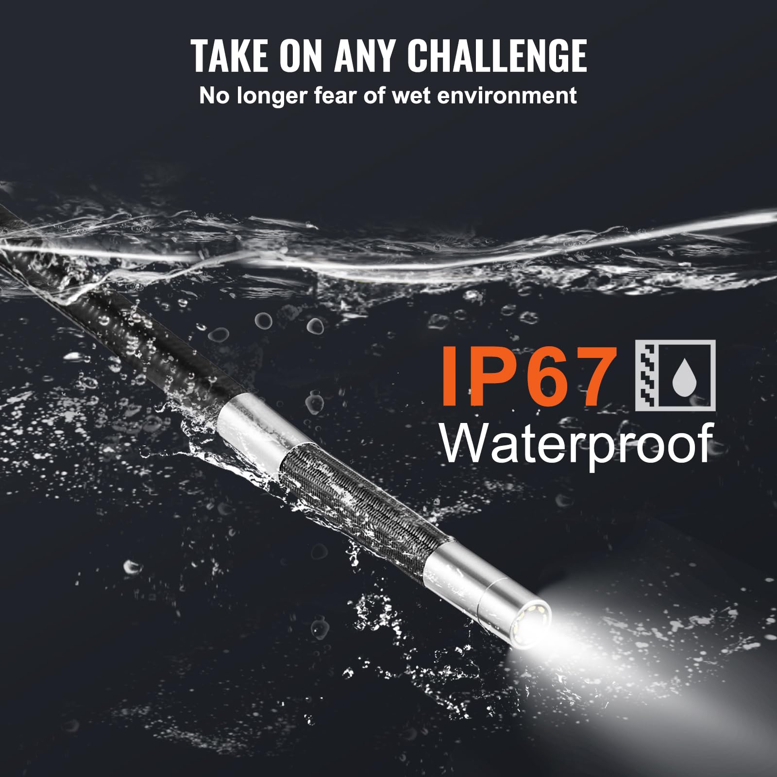 ["Two-way 180° Joint: The VEVOR endoscope features advanced bidirectional 180-degree bending technology, allowing the lens to rotate 180 degrees to the left and right. This enables you to inspect areas from different angles and easily examine the deepest and most inaccessible corners. Whether it's the complex components inside the engine or the intricate circuit layout, everything is clearly visible.","Crystal Clear 5-inch IPS Screen: The upgraded large 5-inch IPS screen delivers crystal-clear 1080P HD images and videos with sharp, true colors. The images can be zoomed in by 1x, 2x, 4x, 6x, and 8x for better visibility of details inside. The unique 180° image rotation function makes your work easier.","6.4mm Ultra-Tiny Camera: Our waterproof 6.4mm lens according to IP67 allows easier access to hard-to-reach areas. The rigid snake cable provides a good balance of flexibility and stiffness when navigating through tight spaces. 8 lights with 3 adjustable brightness levels provide sufficient light for dark situations. Unique high-temperature protection will also protect your endoscope well when the lens temperature exceeds 85°C.","Longer work & more storage: Our high-capacity 4500mAh battery can support up to 4-6 hours of continuous operation. The Type-C interface is easy to plug and unplug. When you're done, simply recharge the device with the included USB charger. Also included is a 32GB TF card for storing images and videos for further analysis.","One endoscope, multiple applications: The VEVOR endoscope camera helps you locate invisible problems and quickly resolve them. It is suitable for inspecting automotive engines, sewer pipes, HVAC ducts, industrial pipelines, etc. Say goodbye to hard-to-reach places. Just make the impossible possible with the VEVOR inspection camera."]