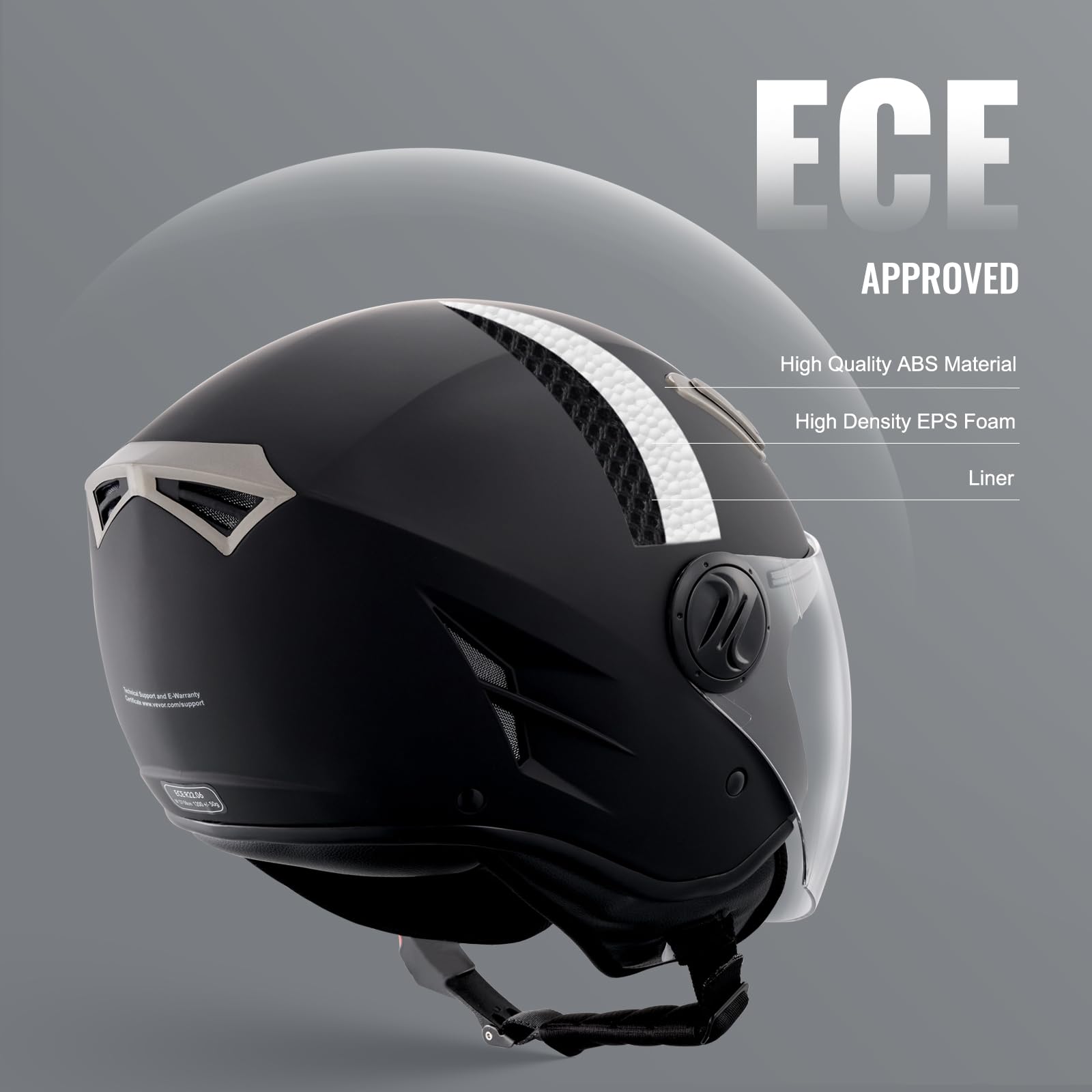 ["ECE-approved & durable: This motorcycle helmet is ECE certified and meets US legal requirements. Its sturdy ABS shell combined with soft EPS foam and skin-friendly lining provides all-around protection for your head.","Clear vision: Equipped with a large transparent visor, the design of the large transparent visor of the motorcycle helmet not only effectively protects against wind, sand, and flying creatures, but also ensures clear vision and minimizes the risk of accidents.","Breathable & non-stuffy: The motorcycle helmet is aerodynamically designed and features multiple ventilation openings at the front and top to effectively avoid wind noise and wind resistance. It not only ensures the coolness and comfort of your head, but also optimal weight distribution.","Removable & washable inner lining: The inner lining of the motorcycle helmet can be conveniently washed and replaced at any time, keeping the inside of the helmet clean and hygienic. This design extends the product's lifespan and ensures your health on every ride.","Safety & comfort: The soft inner lining of the helmet conforms to the head and ensures optimal weight distribution, preventing any pressure on the head. Additionally, the head and shoulders are not burdened even during extended wear."]