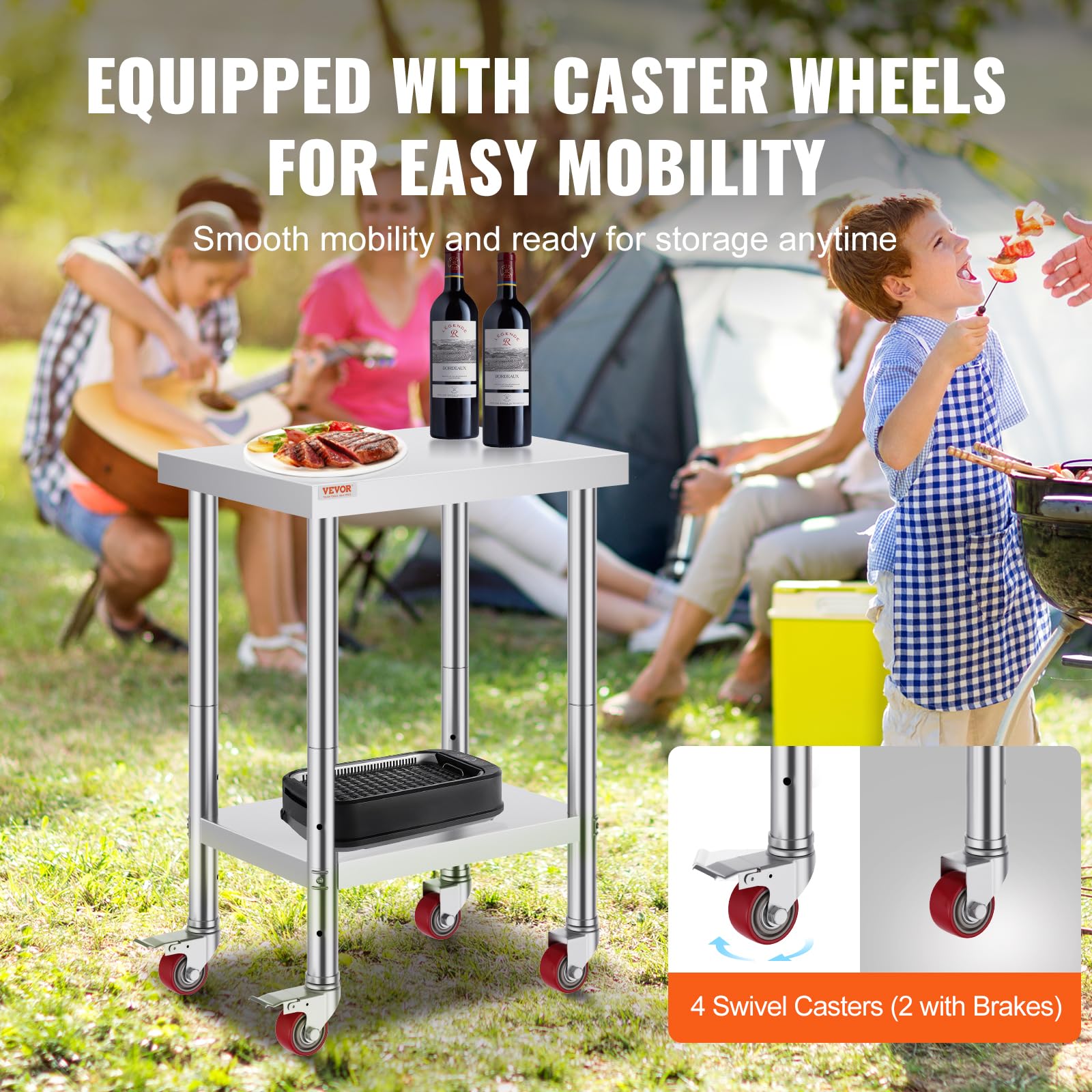 VEVOR Work Table 61 x 46 x 86 cm Stainless Steel Catering Work Table 100 kg Load Capacity Food Prep Table Commercial Kitchen Work Table for Kitchen Bar Restaurant 4 Adjustable Feet