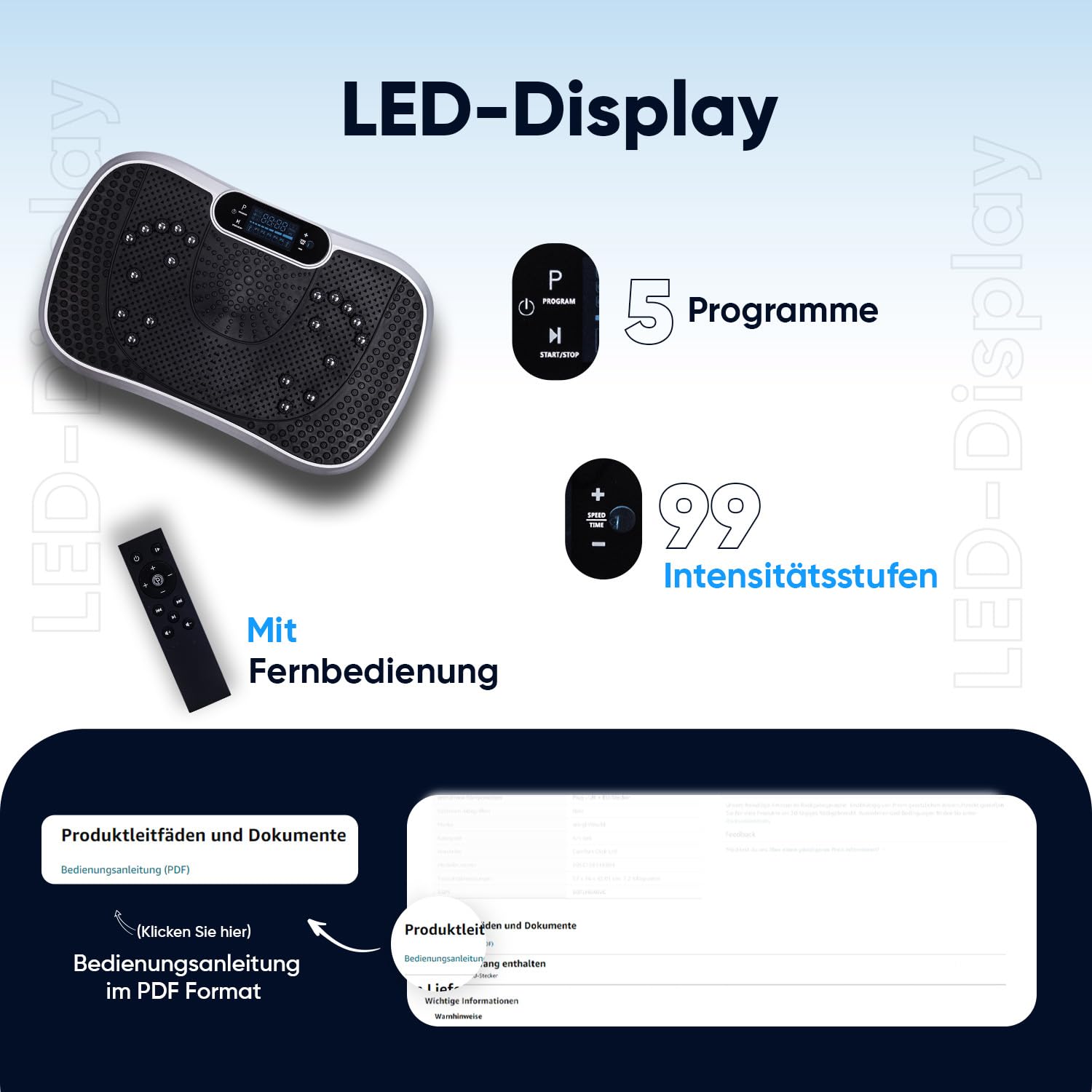 Vibration plate - 99 intensity levels - 5 training programs - Fitness equipment for home - Massage and sports device with Bluetooth for home workout - WeightWorld