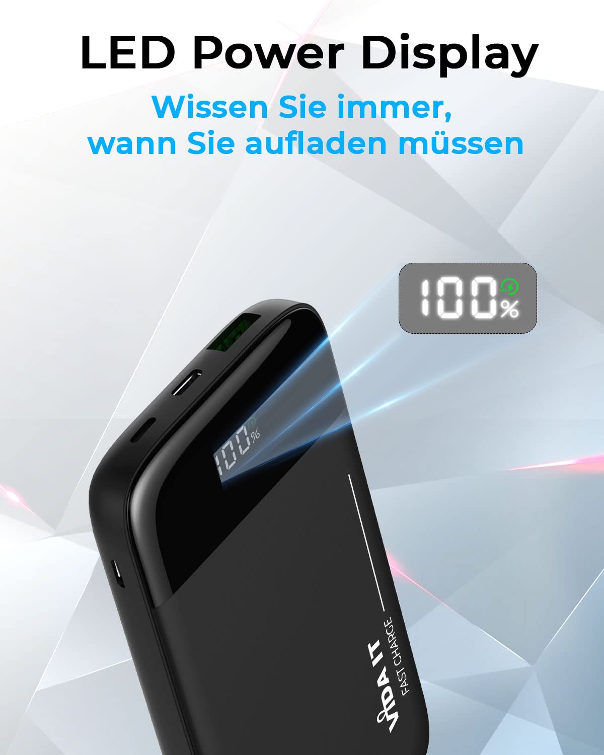["β‘ FAST CHARGING: The vZap charger has an output power of up to 22.5W, making it one of the fastest charging power banks on the market. Supports QC 4.0 (Quick Charge) and PD 3.0 (Power Delivery) for iPhone and Android, as well as SCP (Super Charge) for Huawei phones. Charges up to 50% in just 30 minutes.",