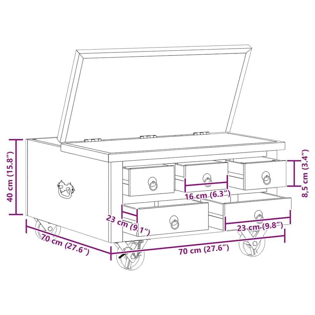 vidaXL Rustic Mango Wood Coffee Table with 5 Drawers, 1 Storage Compartment Vintage Side Table Living Room Table Coffee Table Sofa Table 70x70x40cm