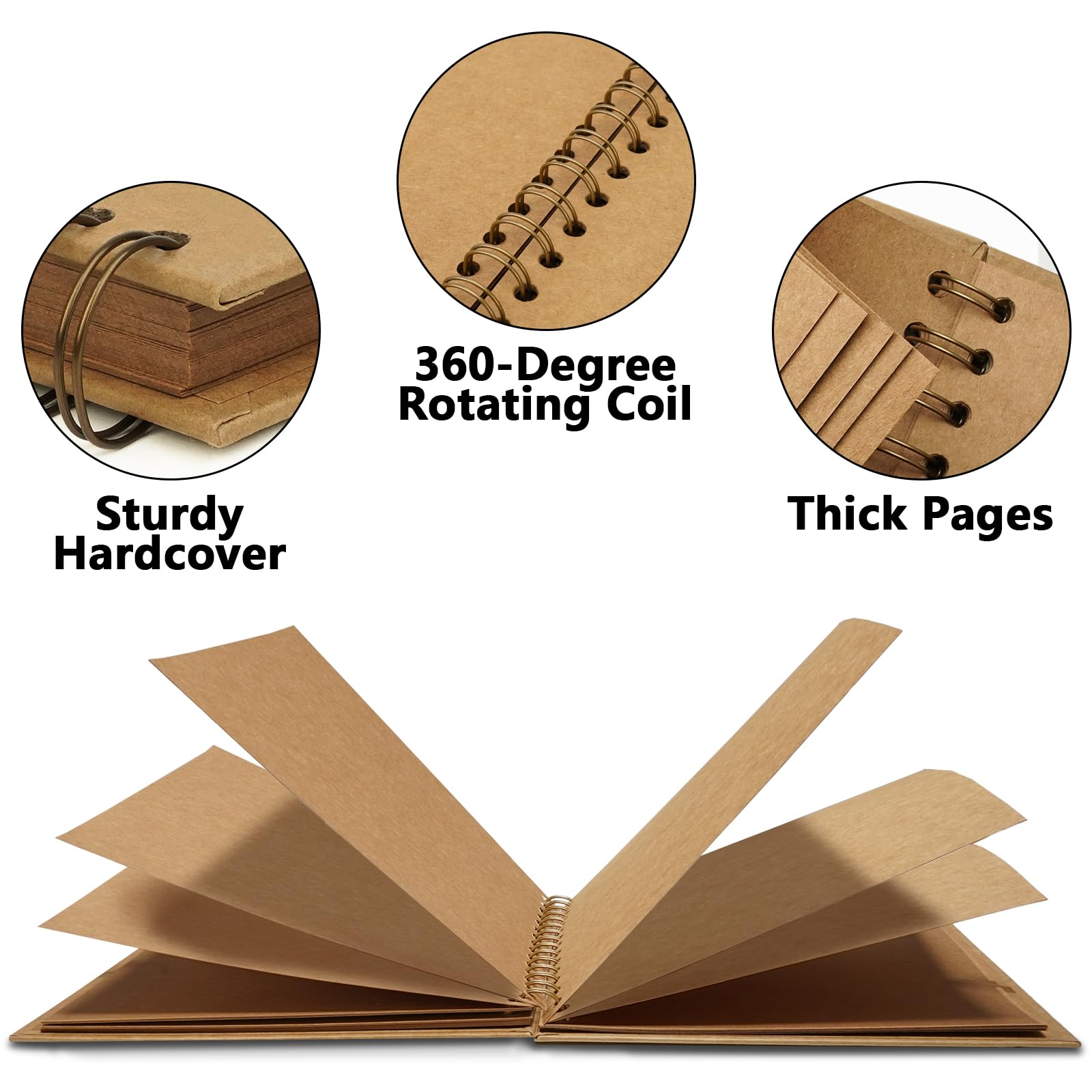 Vienrose 28.5 x 20.5 cm photo album for DIY customization and pasting with 100 pages, hardcover kraft paper spiral album scrapbook, DIY memory book for wedding, birthday, anniversary, khaki color.