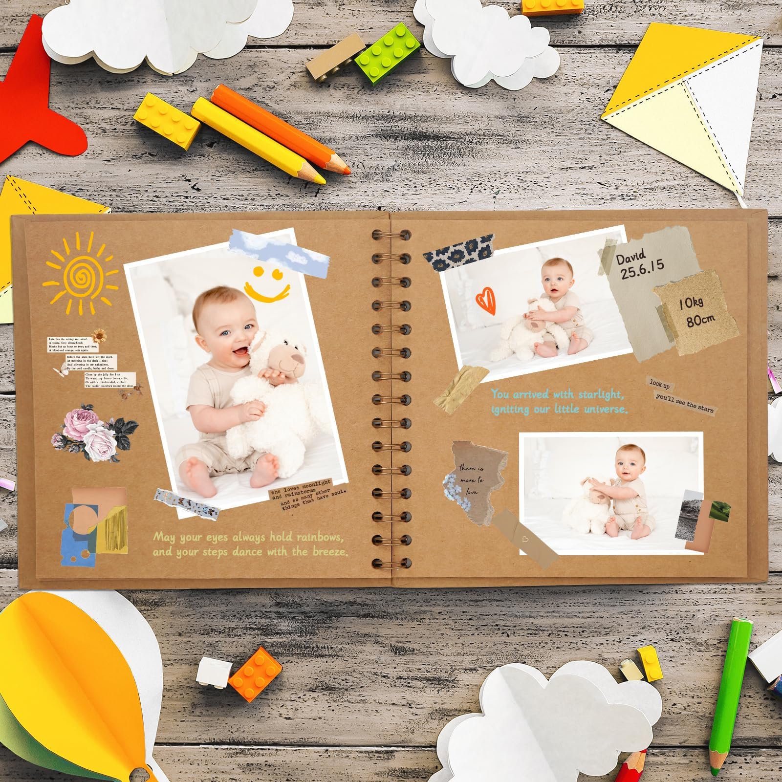 ["1. Ideal size for your most beautiful memories: This DIY photo album in a convenient 11x8 inch format offers plenty of space for your best photos on 100 high-quality pages (50 sheets). The perfect size for square social media photos and creating personal memory albums and scrapbooks.","2. Practical spiral binding for maximum user-friendliness: The sturdy wire-o binding allows for a complete 180-degree page turning without crumpling. This allows you to work comfortably at any point in the album, lay it flat, and effortlessly view your memories.","3. High-quality & archival material for long-term protection: The sturdy hardcover and thick acid-free kraft paper protect your photos and keepsakes from yellowing and decay. Ideal for preserving your most precious moments for the long term - for you and future generations.","4. Unleash your creativity: The perfect DIY scrapbook: Your imagination knows no bounds! Personalize each page with photos, tickets, drawings, stickers, and other craft materials. The ideal creative set for adults and teenagers to design unique memory books.","5. The meaningful gift for any occasion: The perfect personal gift for birthdays, weddings, anniversaries, Christmas, or Mother's Day/Father's Day. A self-designed album is a unique and heartfelt gift for your family, friends, or partner"]