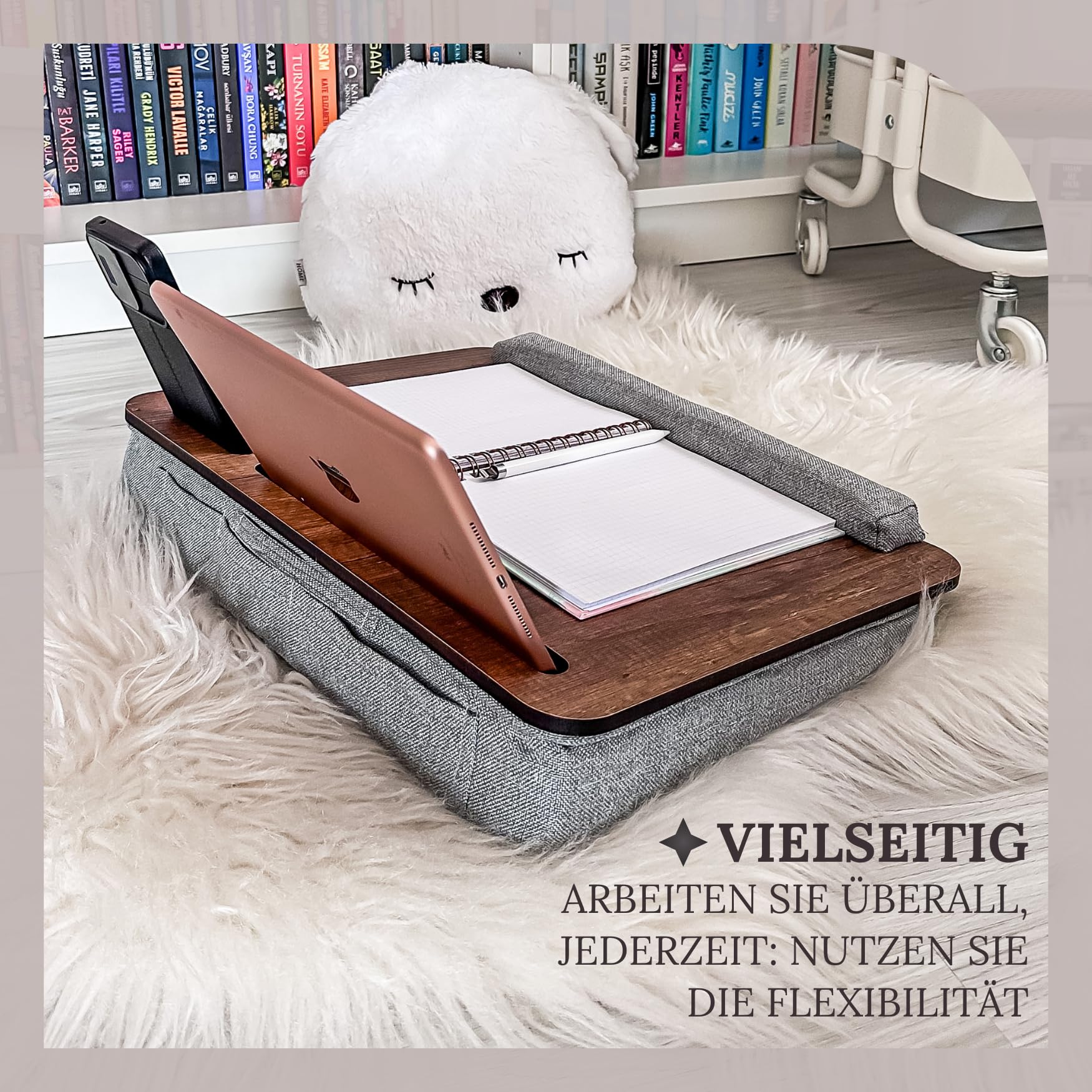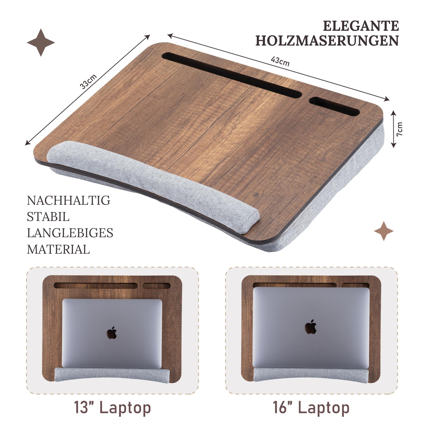 Vigo Wood Laptop Cushion, Portable Laptop Table with Cushion, Soft Cushion Bed Sofa Table for Home and Office, Portable, Lightweight, Soft Wrist Rest, Suitable for Laptops, Tablets.