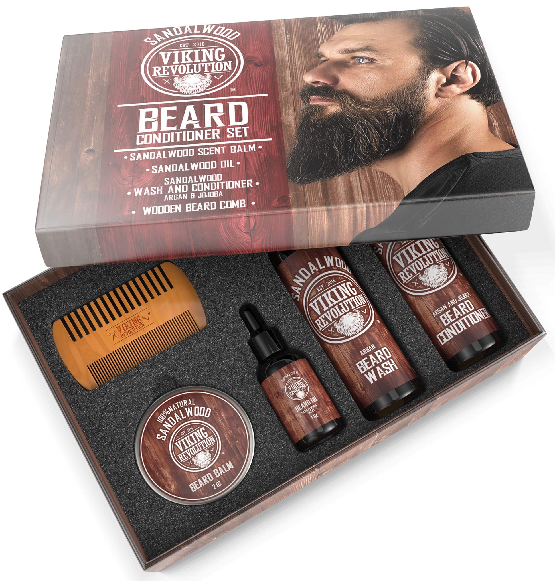 Viking Revolution - Beard Care Kit for Men - Conditioner Men Set Smooth & Relieve Beard Itch - Includes Beard Shampoo, Conditioner, Beard Oil, Beard Balm & Beard Comb Gifts For Men Sandalwood
