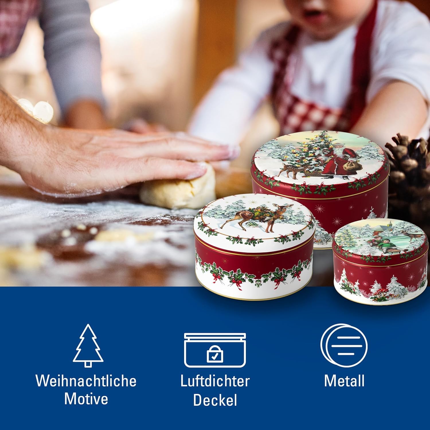 Villeroy & Boch - Winter Collage Accessory Cookie Jar Set of 3, Christmas Canisters, Cookie Tins, Christmas Tins, Christmas Cookie Tins, Tin Cans, Christmas Decor, Biscuit Tins, Metal