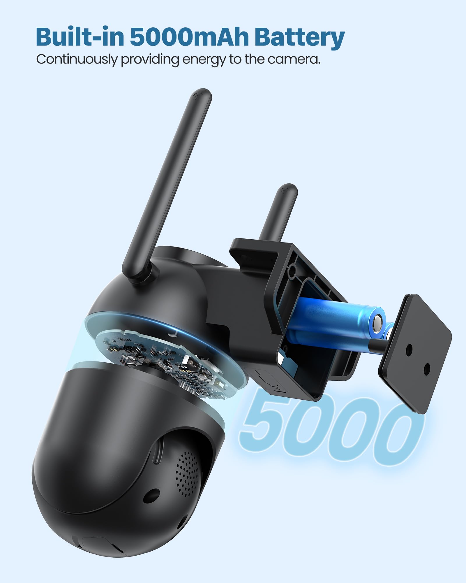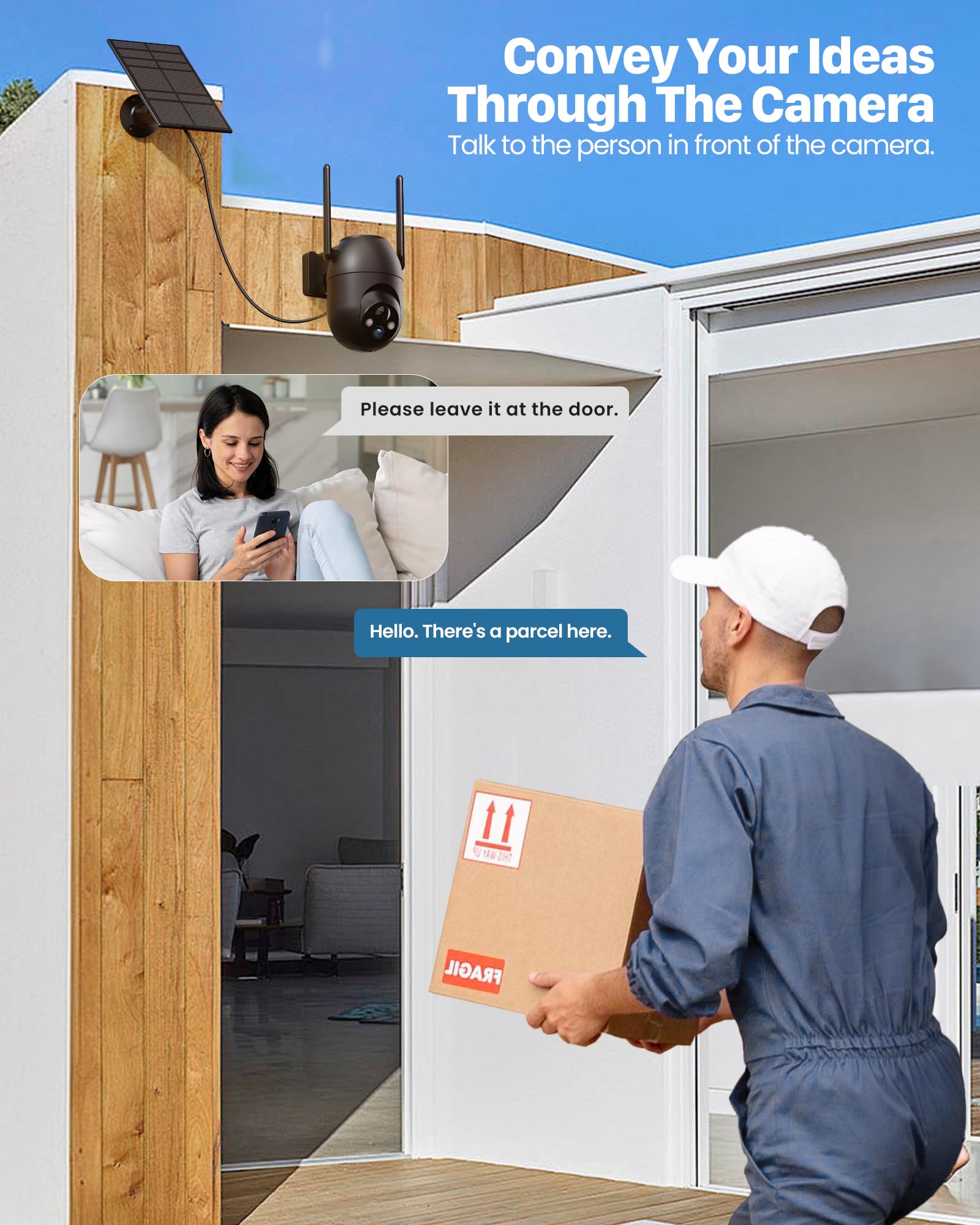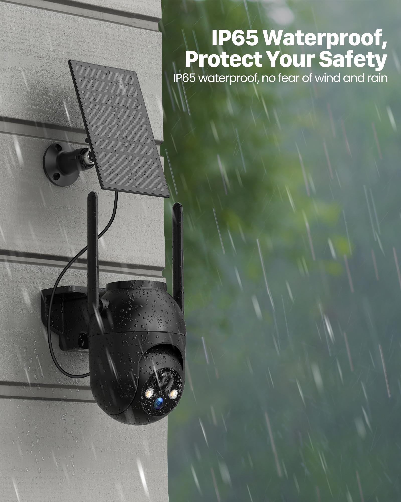 ["【2K Resolution & Mosaic-Free】The latest 2K resolution technology enhances the visual effect of the camera. Compared to a full mosaic, with this camera you are more likely to see clear videos, providing you with a different user experience.","【Camera with Alarm Sound】You can set the camera to emit a sharp alarm sound to deter intruders or unwanted small animals. The camera can automatically emit a sound when a motion alarm is triggered. You can also speak what you want by manually pressing the microphone icon in the app. If you have the camera automatically trigger an alarm, please be mindful if this affects your neighbors.","【More Intelligent Person Detection】This feature can effectively provide you with important alarm information. The cameras can distinguish between people, animals, or cars based on the image of moving objects. If you only need to recognize people, you can enable this feature. If you need to see small animals or vehicles, you can disable this feature. ","【Eliminate Tedious Charging Steps】The solar camera comes with a solar charging board and a powerful lithium battery, allowing it to be charged by solar energy during the day and powered by the battery at night, without worrying about a weak battery. You no longer need to climb a ladder to remove the camera for charging.","【Multifunctional Wireless Security Camera】IP65 waterproof, sound and light alarm, PTZ 360° coverage to ensure you always have an overview of the situation at home and protect your property If you encounter any problems during use, please do not hesitate to contact us. We will provide you with satisfactory service."]
