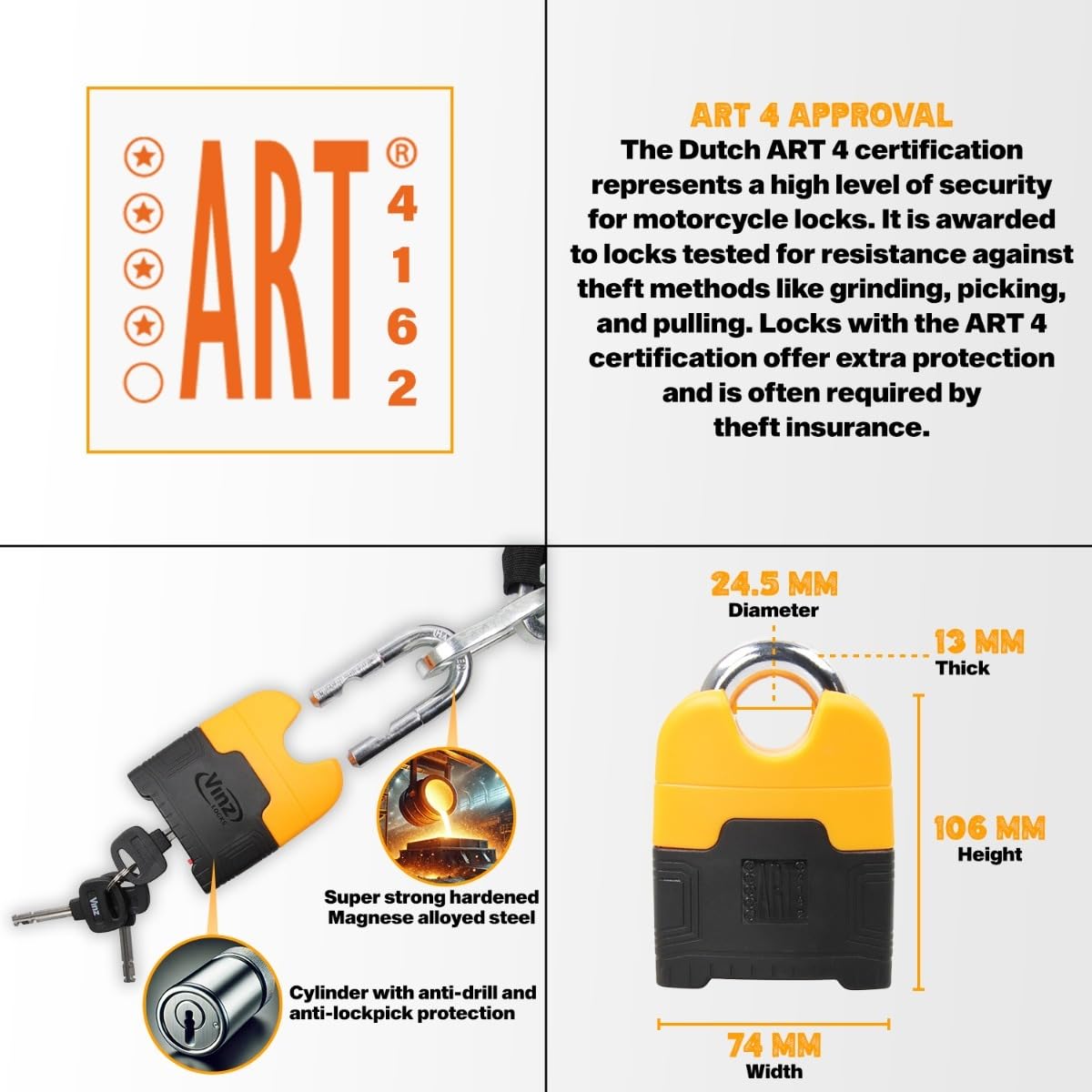 Quality Mark - The chain lock has an ART 4 quality mark and is therefore recommended by most bicycle, scooter, and motorcycle insurance companies. The ART Foundation has independently tested and rated this lock. This makes this lock an ideal security measure. If you intend to insure your vehicle, this lock is highly recommended. Even if you do not want to insure the vehicle, this lock provides reliable security.