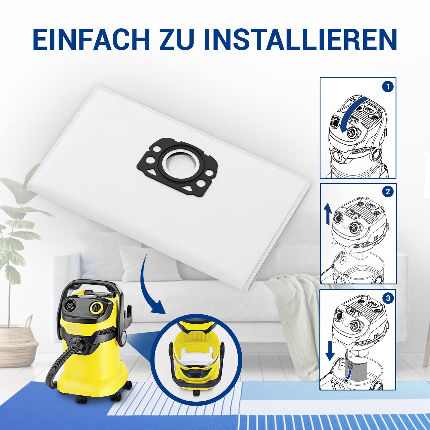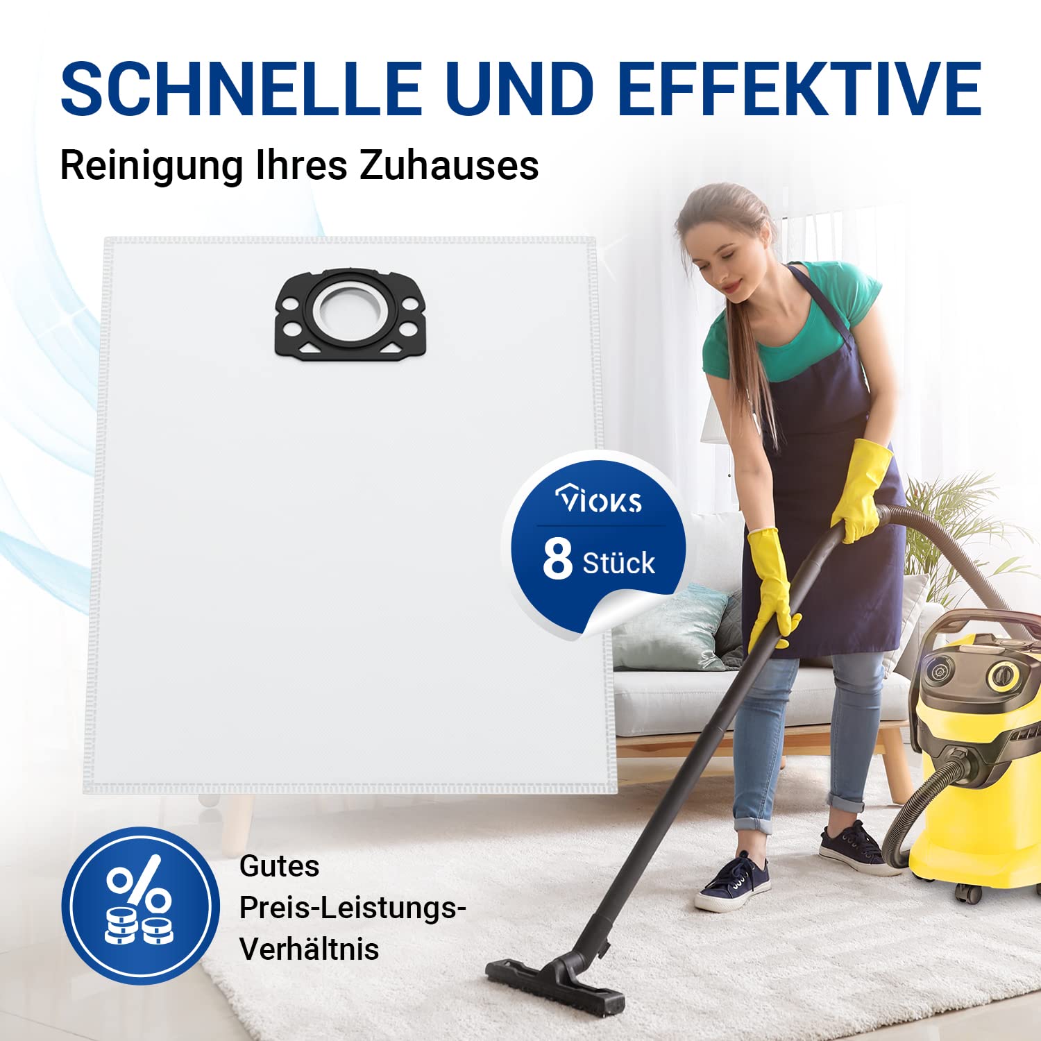 VIOKS 8x Vacuum Cleaner Bags Replacement for Kärcher 2.863-006.0 Fleece Filter Bag KFI 487 - Kärcher Filter Bags Fleece Vacuum Cleaner Bags for Kärcher Wet Dry Vacuums WD4 WD5 WD6 MV4 MV5 MV6 WD5P WD6P