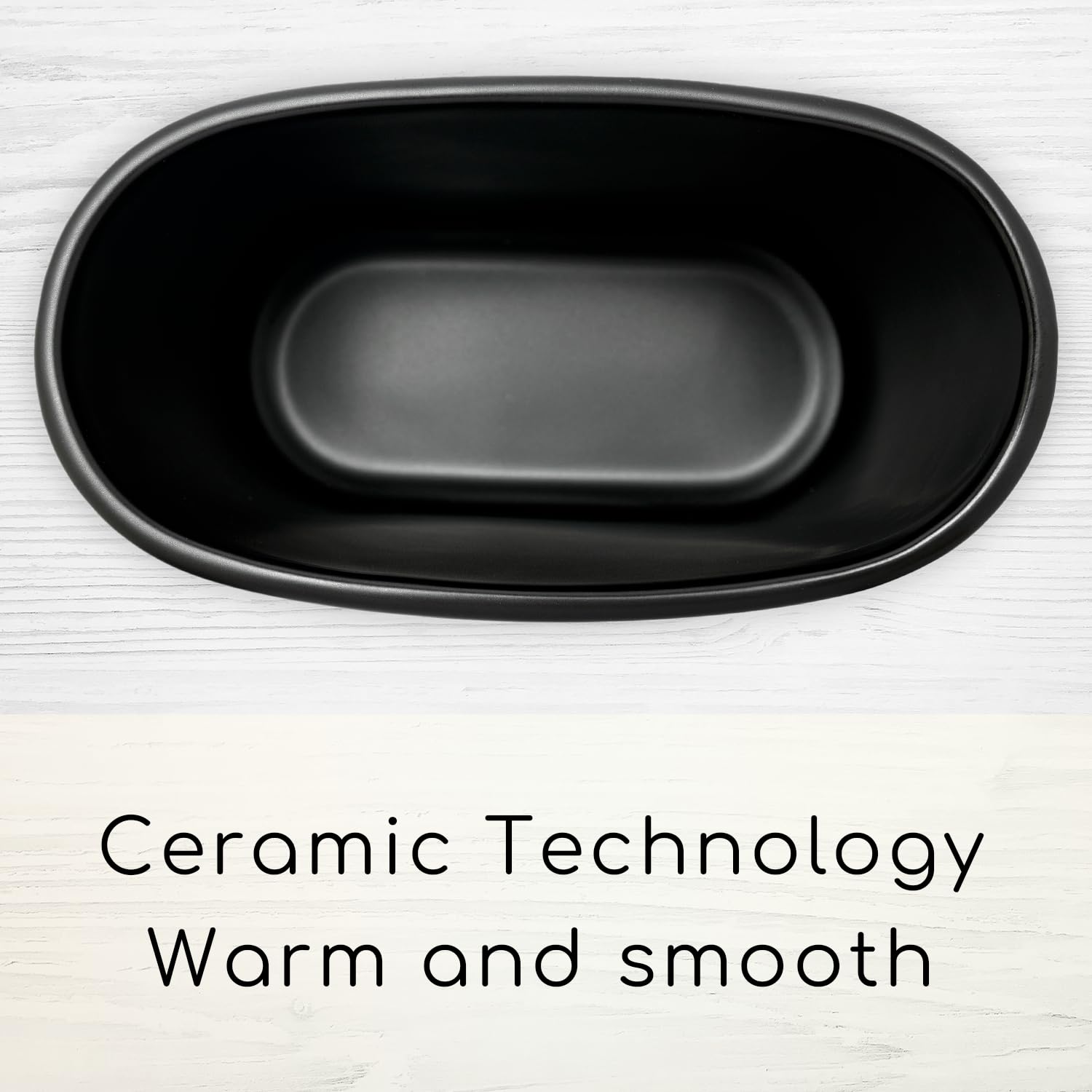 "Construction: Solid ceramic and bamboo base. The bamboo base is glued to the ceramic plate. Cooking utensil holder with non-slip bottom and anti-slip pads. 4 inches wide x 7.9 inches long x 7.9 inches high. Capacity: 2.3 liters."]