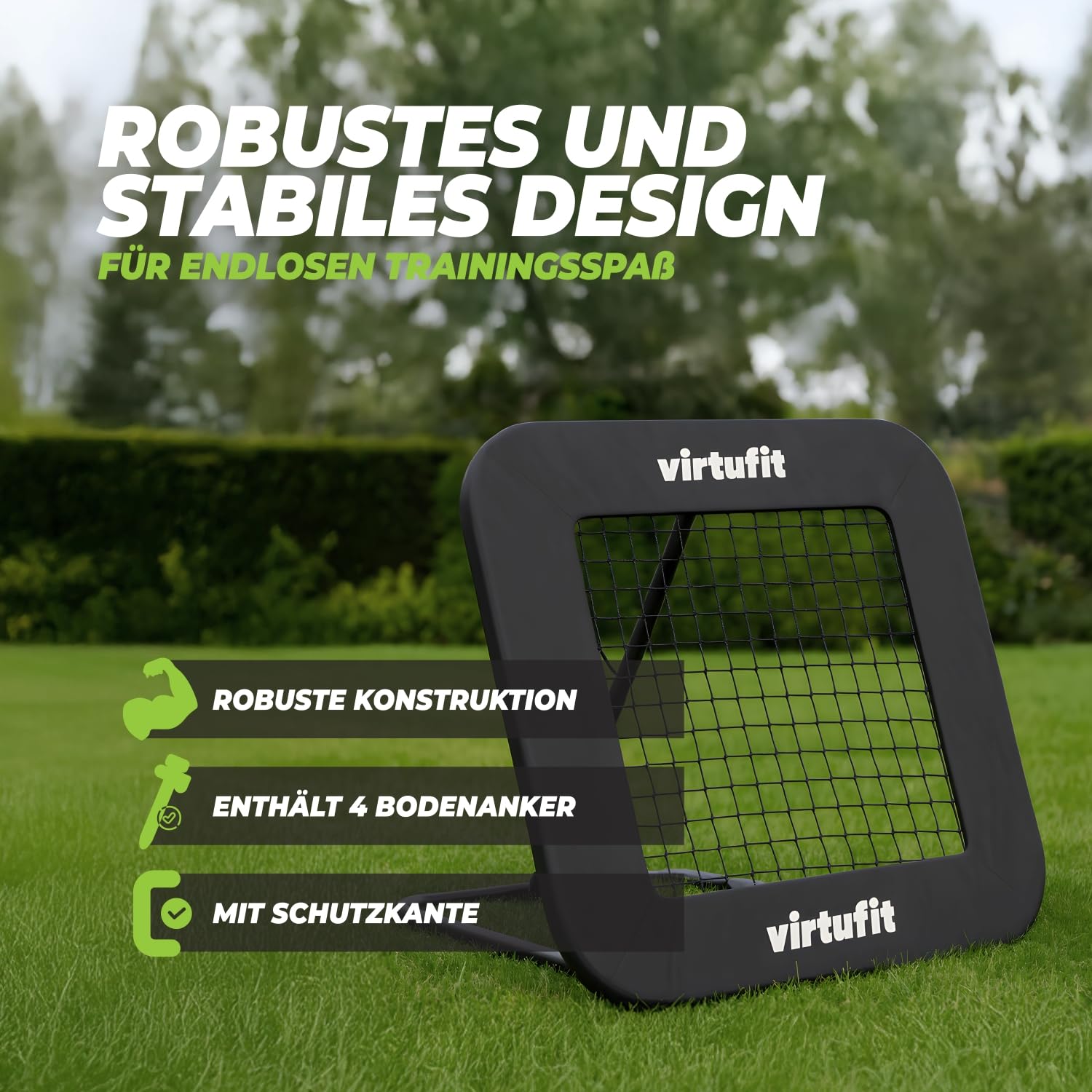 ["Virtufit Rebounder Pro: perfect training tool for improving passing, catching, and other skills","Foldable model: easy to set up and fold, never in the way","Frame with telescopic tubes: 5 corners adjustable to determine ball return","33 x 33 inches: ideal size for kicking hard and utilizing proper technique","12 elastics: adjustable resistance, versatile for handball, volleyball, hockey, or Tschoukball"]