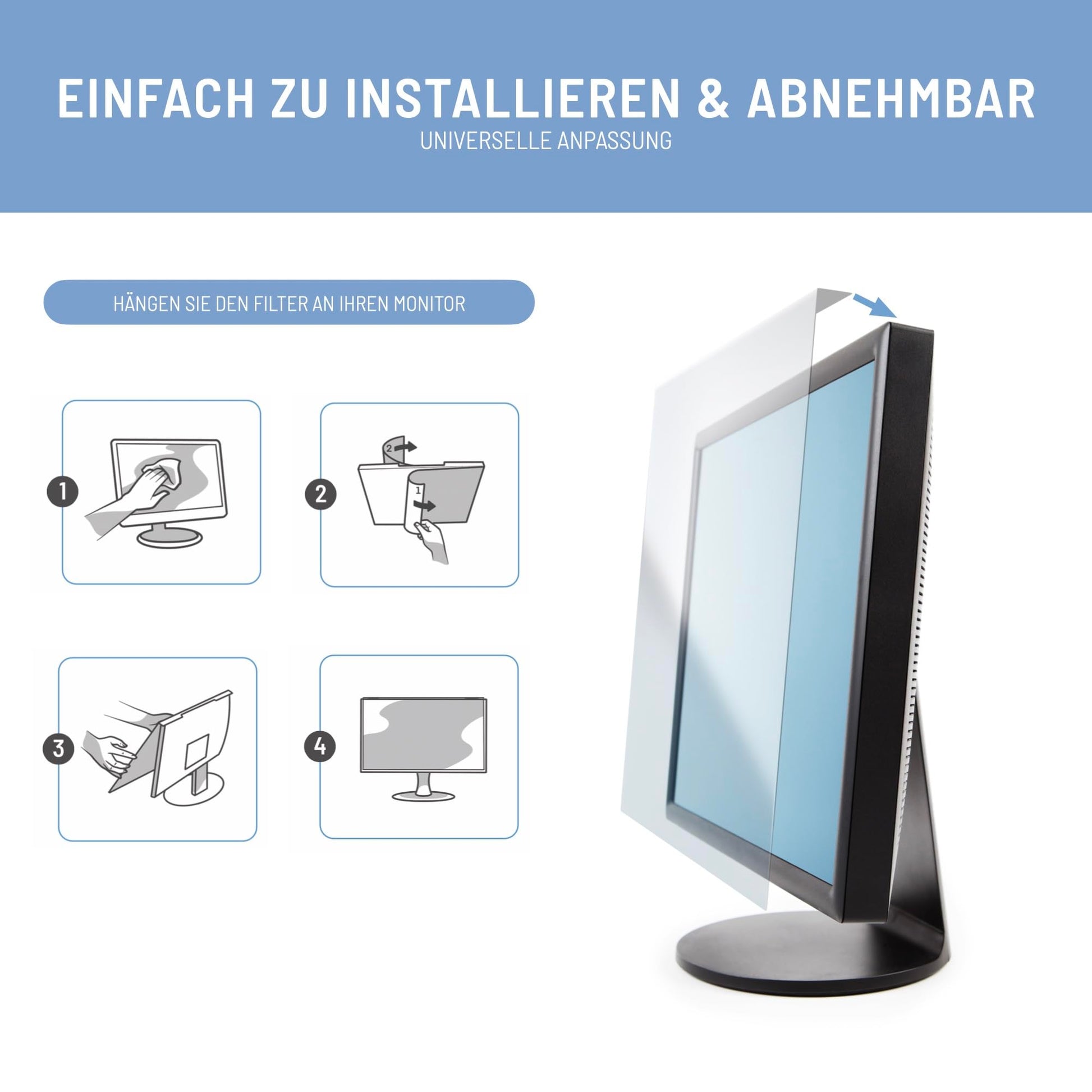 "EASY INSTALLATION: No adhesives required. Simply attach the filter to your monitor. This way, you can easily remove, clean, and reattach it.",