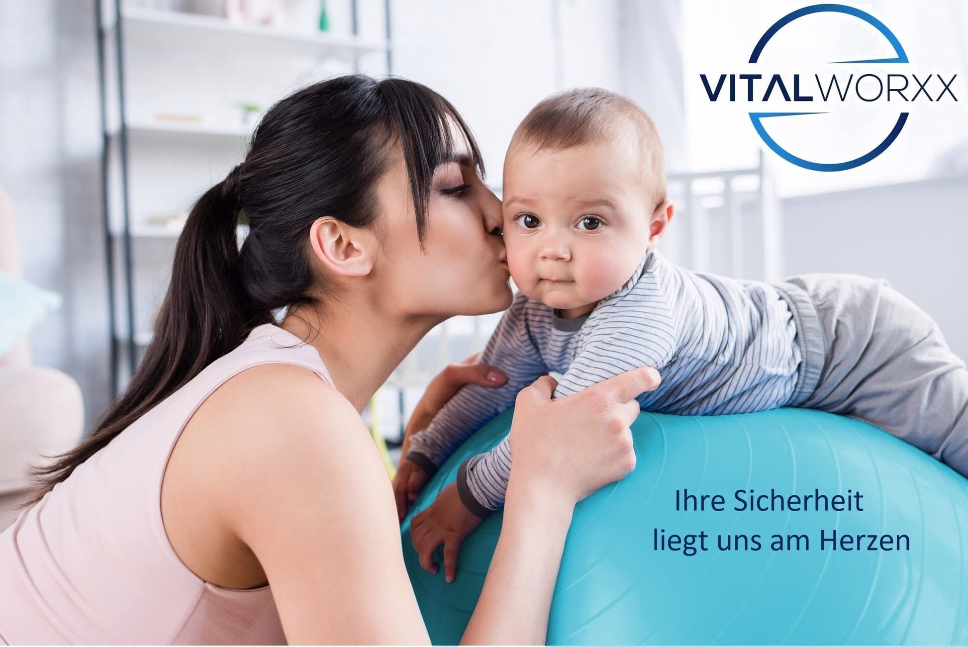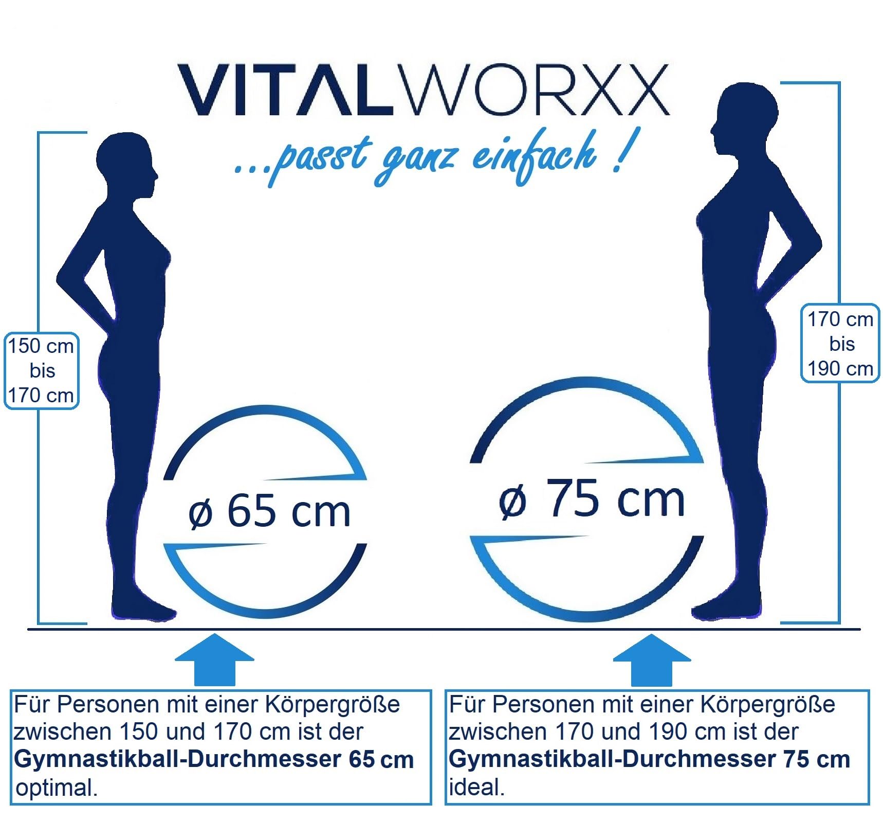 VITALWORXX Gymnastics Ball for Pregnant Women, extremely stable, Exercise Ball Yoga Ball Pezzi Ball with pump, with exercises for pregnancy, birth, health.
