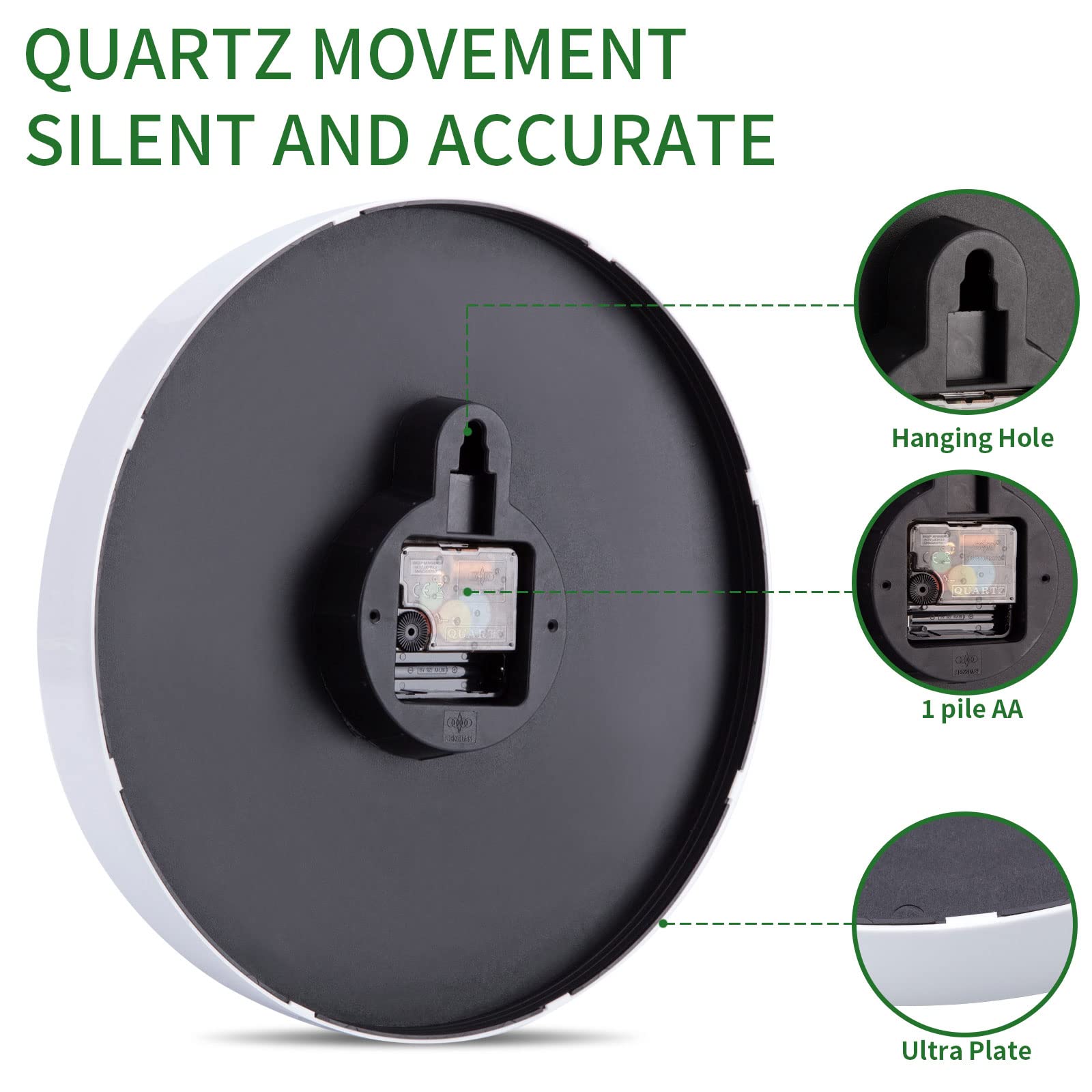 VIVILINEN luminous wall clock with large numbers, no ticking noise, quartz round clock, battery-operated, silent hanging clock for kitchen, home, office, living room, bedroom 12 inch