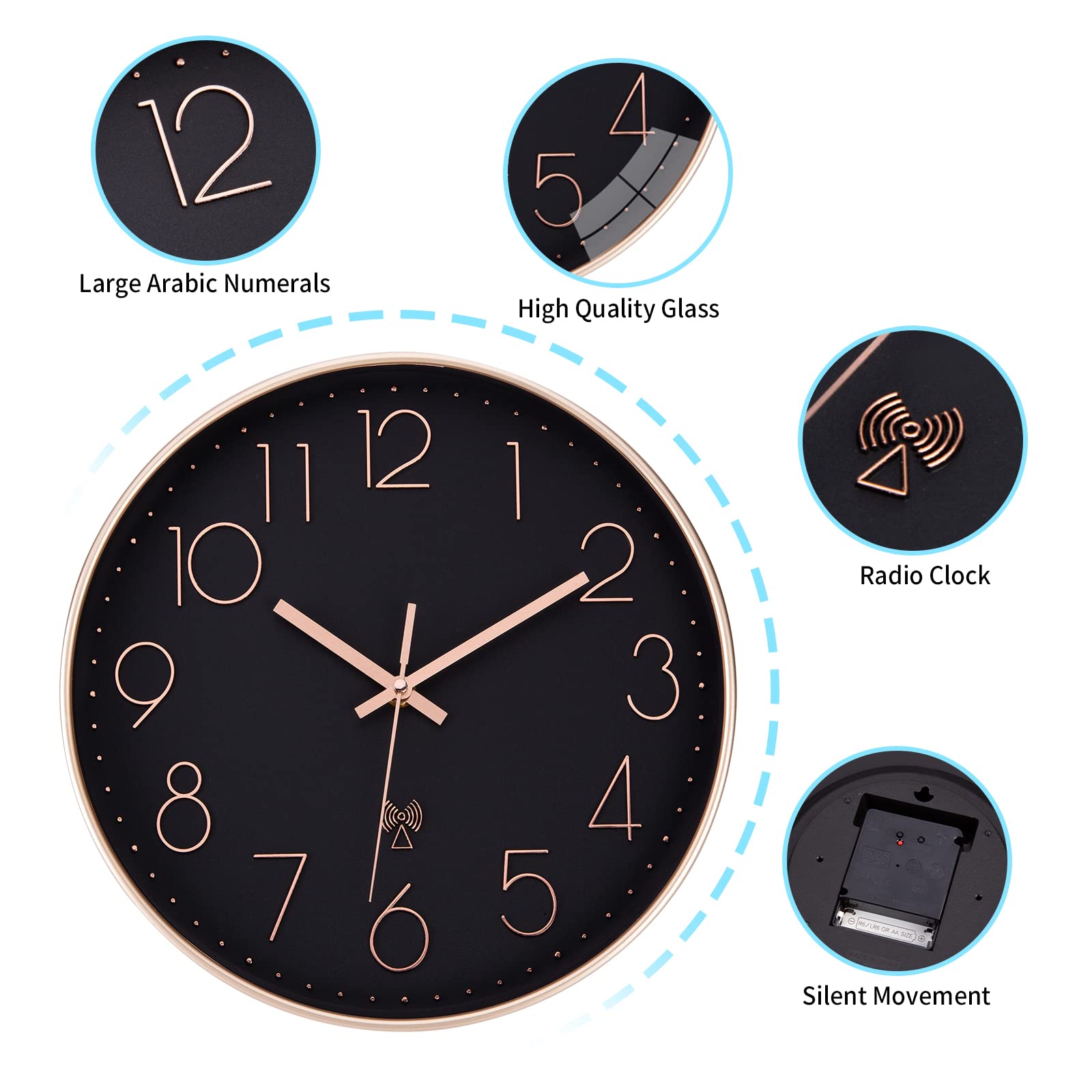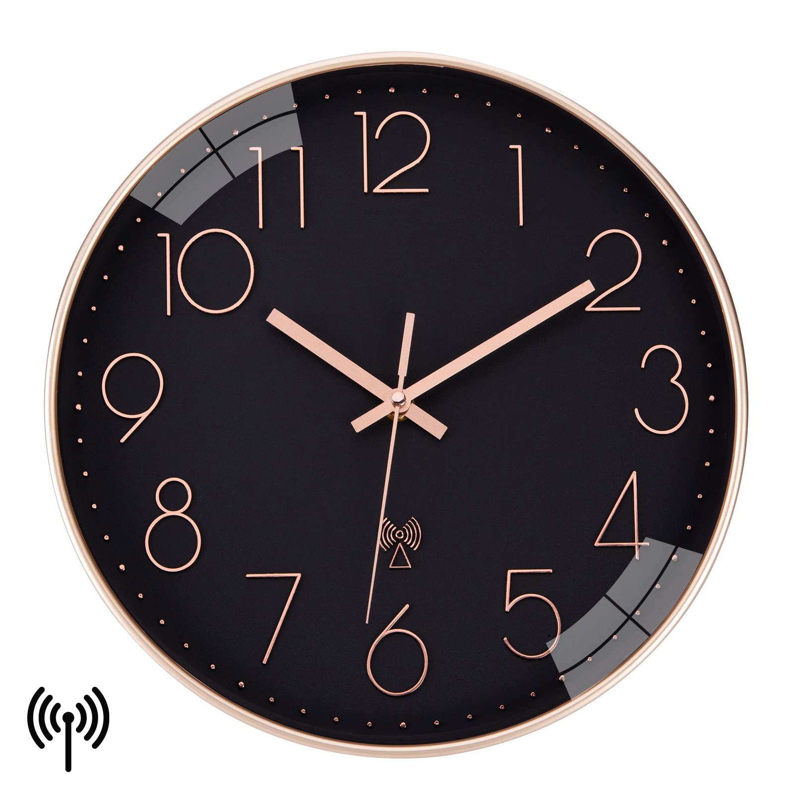 ["Precise timekeeping through DCF radio control: Our radio-controlled wall clock automatically adjusts for daylight saving time without manual intervention. With exact time adjustment, it guarantees the highest accuracy.", "Silent movement without ticking noises: This radio-controlled wall clock creates a quiet atmosphere in the living room, kitchen, office, and bedroom. The large wall clock with a 30 cm diameter provides good visibility.", "Easy setup with AA battery: After inserting the battery, the wall clock automatically starts receiving the signal, and the hands stay at the 12 o'clock position. After receiving the signal, the hands will automatically turn to the current time and start ticking.", "Reliable reception of radio waves: Place the wall clock in a location with light radio wave reception. Avoid electromagnetic interference for smooth operation.", "Worry-free customer service: Besides inserting the battery, no further manual intervention is required. If you encounter any issues, you can set it up following the method in the manual or product video, or contact us through the Amazon platform for satisfactory customer service and a resolution."]