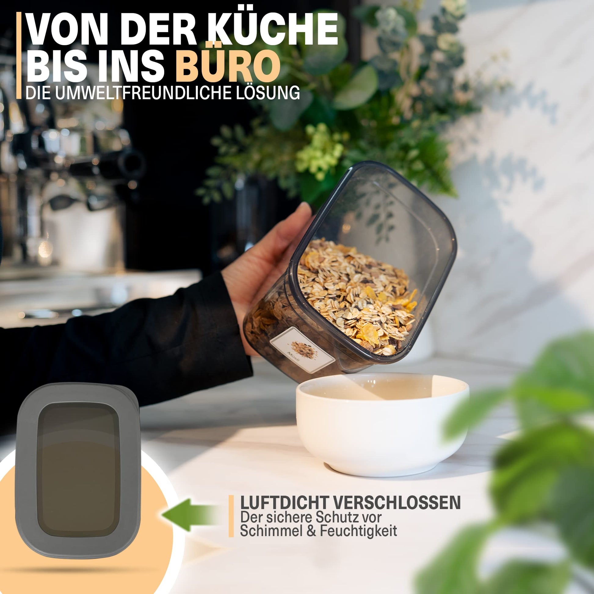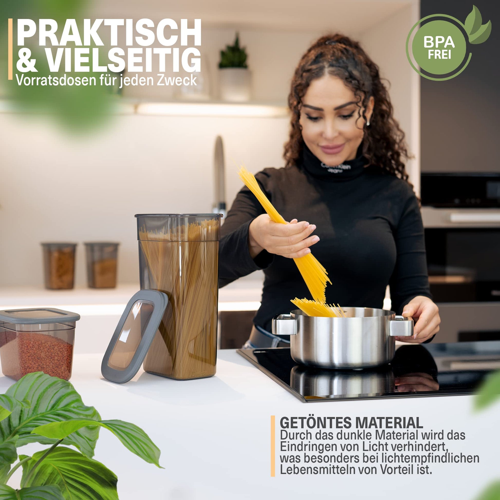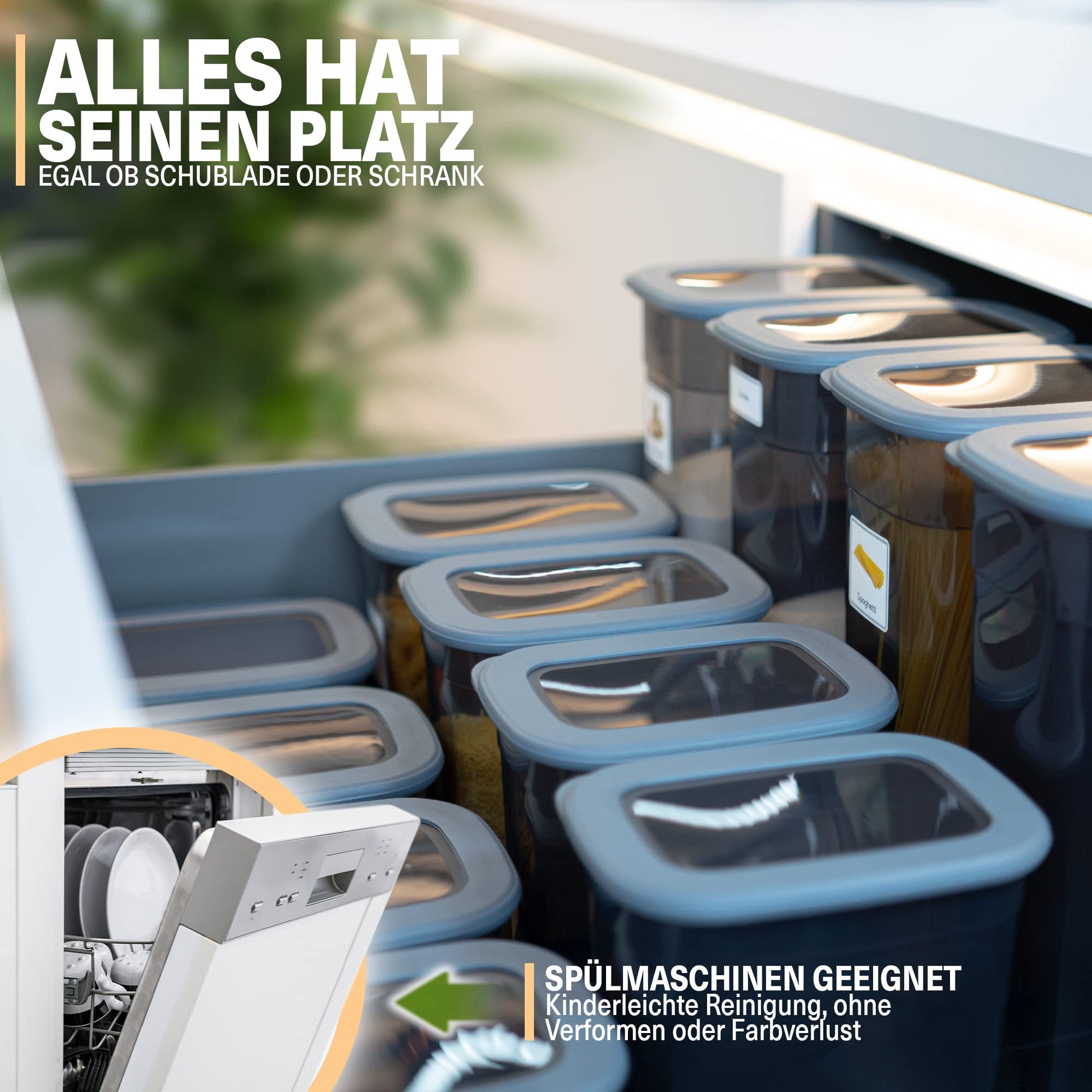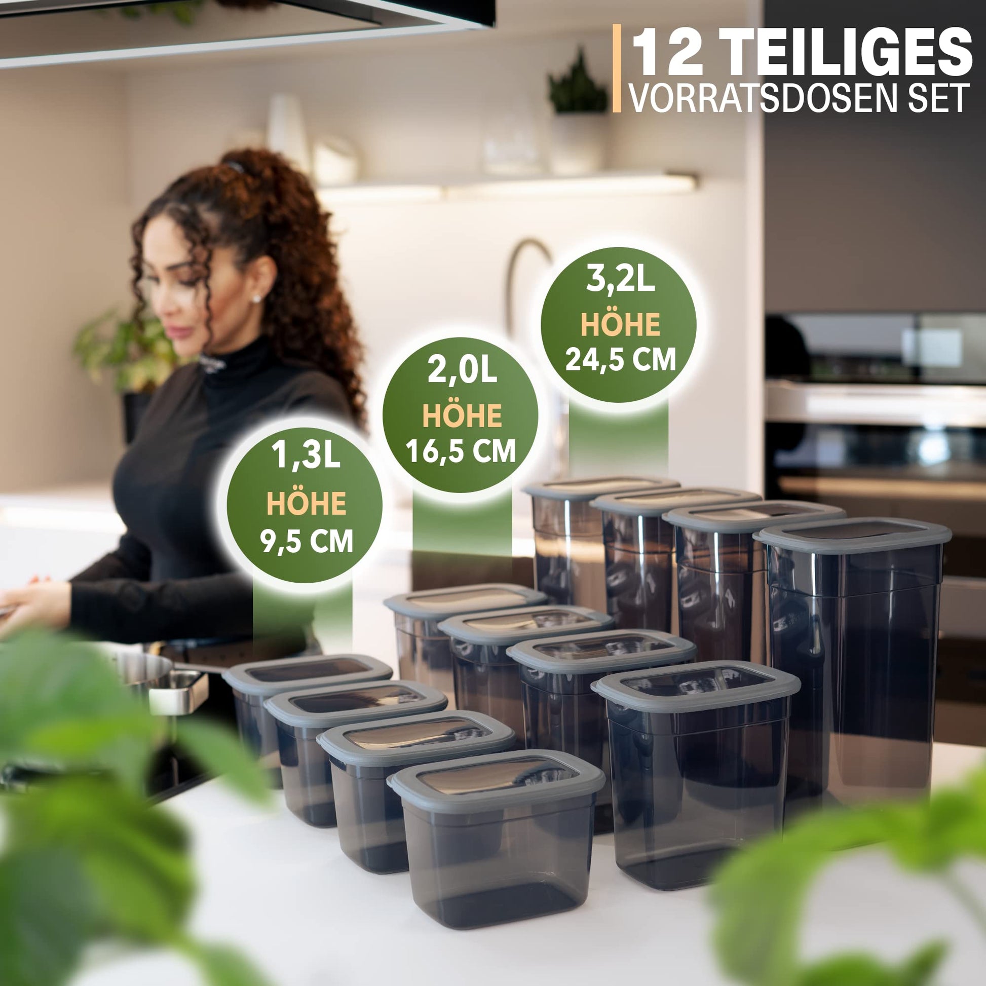 ["ORDER & MORE SPACE - With our storage container set, you get 12 rectangular storage containers with lids for easy storage & kitchen organization of foods like flour, cereal & sugar.","DISHWASHER SAFE & BPA-FREE - The sturdy plastic material is BPA-free and dishwasher safe. This allows the kitchen storage containers to be easily cleaned and ensures maximum hygiene.","SAME LIDS & STACKABLE - The storage container sets include 4 x 1.3 liters, 4 x 2 liters, and 4 x 3.2 liters large containers. All containers have the same size lids and can be stacked.","TRANSPARENT & SHATTERPROOF - For better visibility and easy handling, the food-safe material is transparent and shatterproof. This way, you always have a clear view of the container contents.","FOR FLOUR, CEREAL, SUGAR & MORE - The kitchen organizer containers can be used throughout the household. Especially in the kitchen, they are ideal for storing sugar, flour & cereal."]