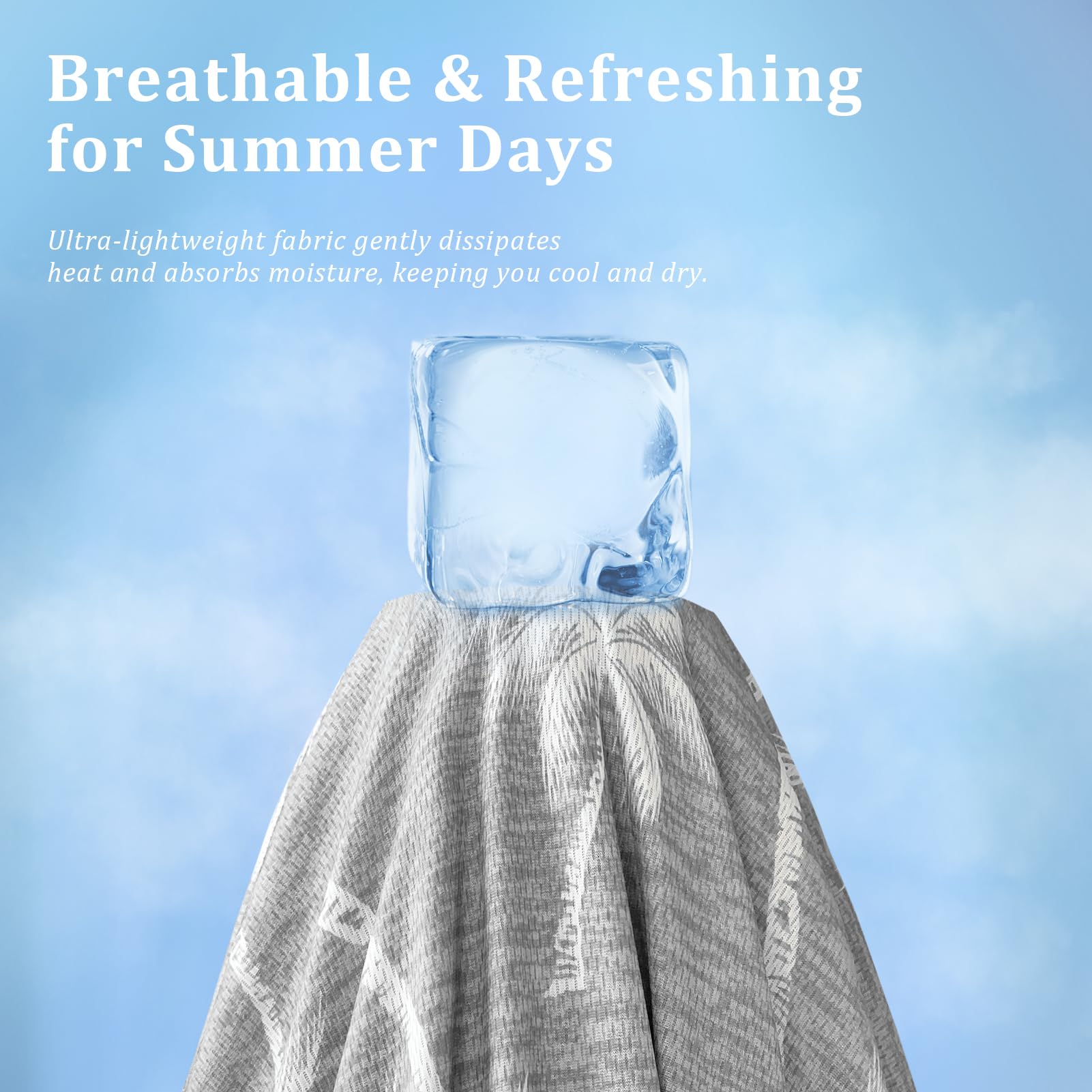 VK·LIVING Cooling Blanket for Bed & Heat-Stricken - Double-Sided Cooling Blanket with Q-Max 0.42 and Tropical Pattern, Lightweight Breathable Summer Blanket against Night Sweats for Sofa, Travel, 130x150cm Gray